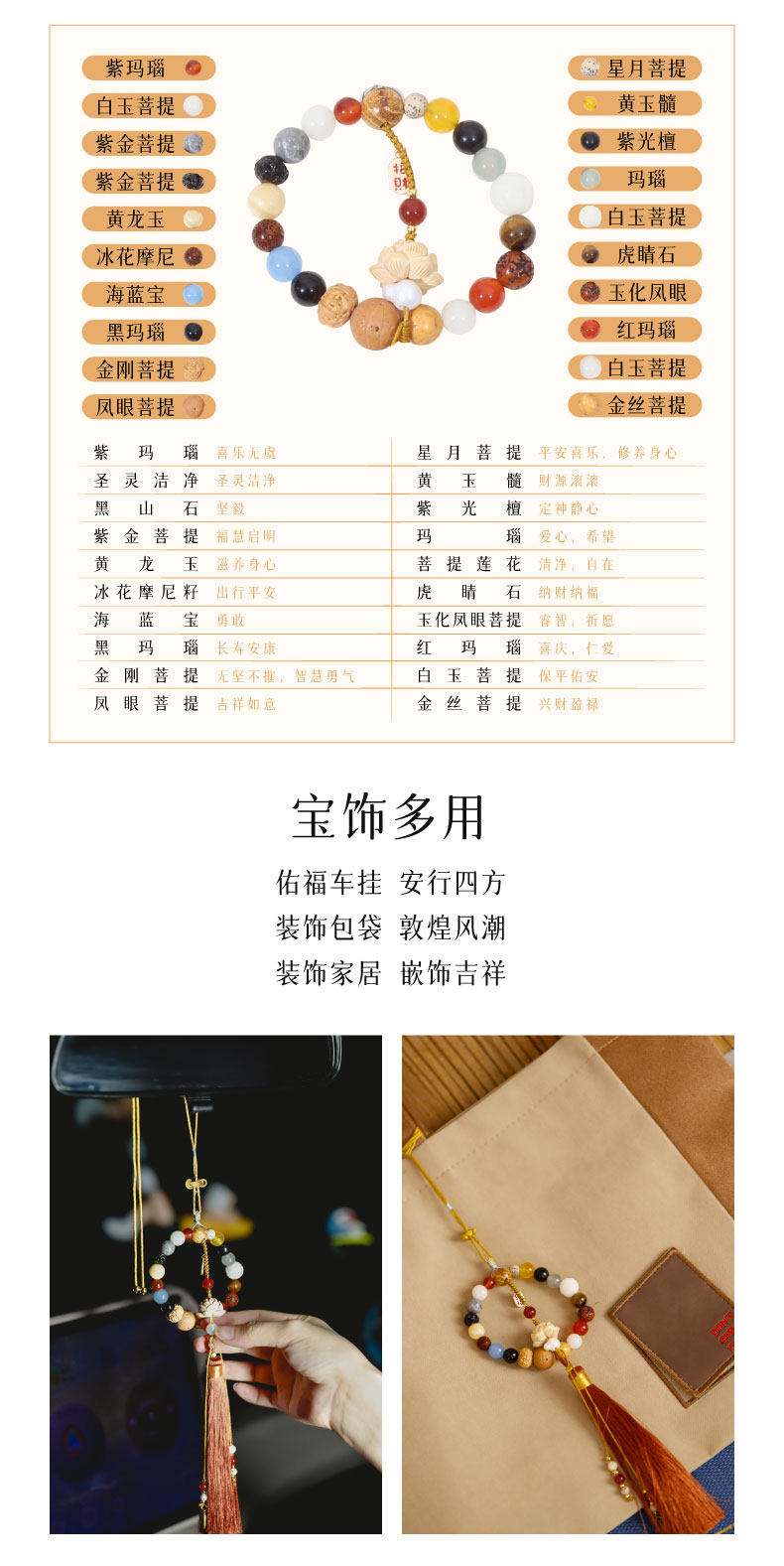 敦煌研究院 【十八籽车挂】多宝嘉福珠串 博物馆文创礼品平安出行高级挂件