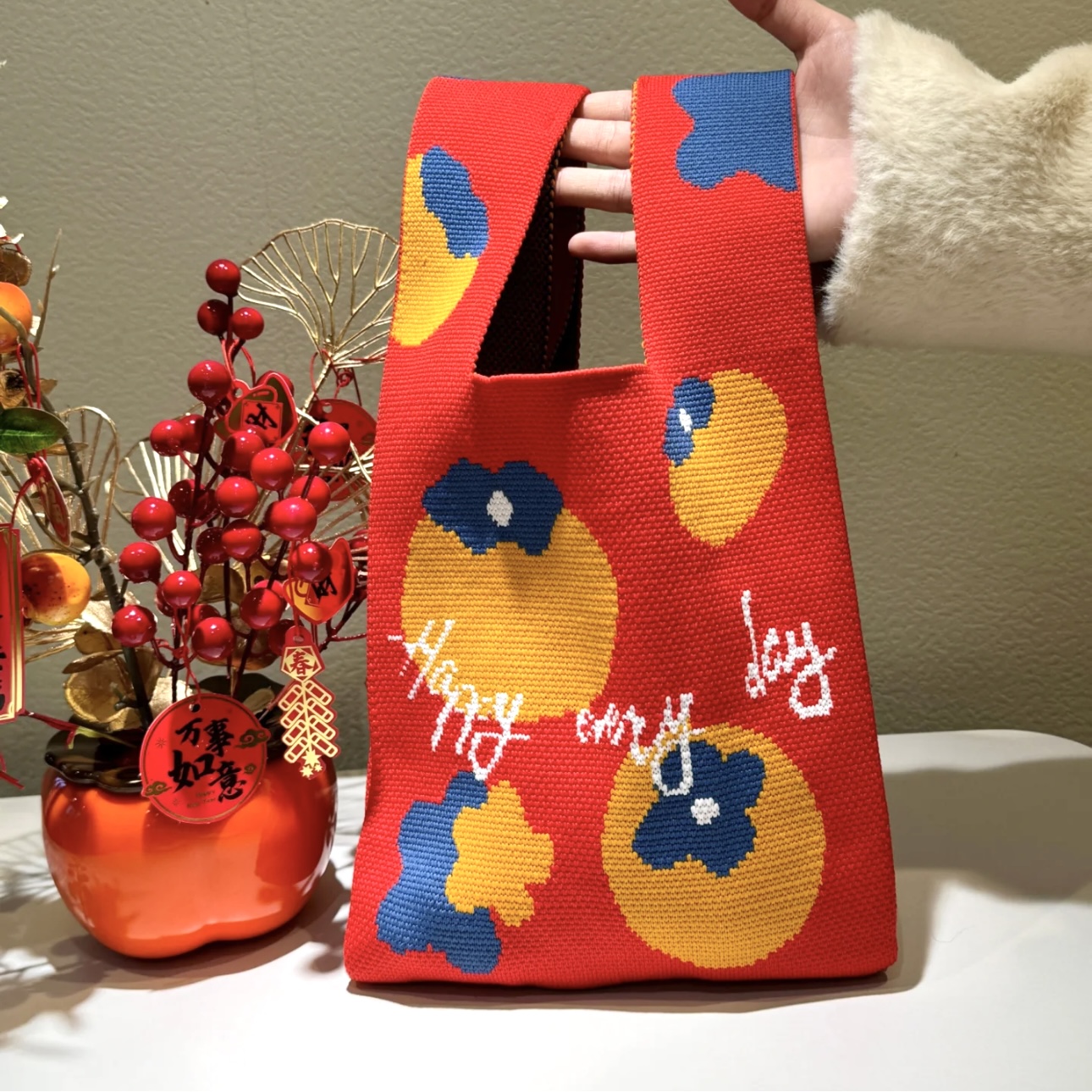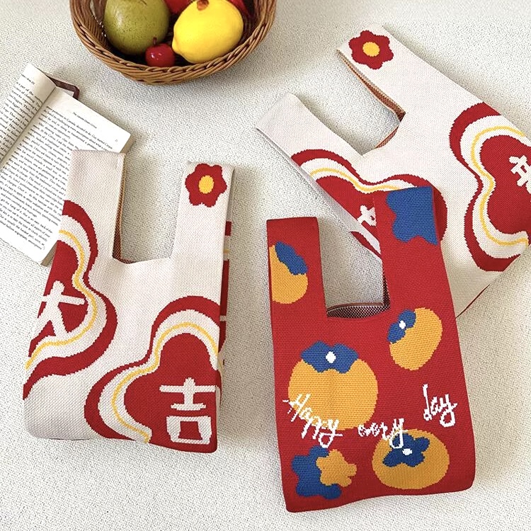 【品名】大吉大利针织手拎包
