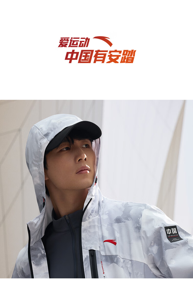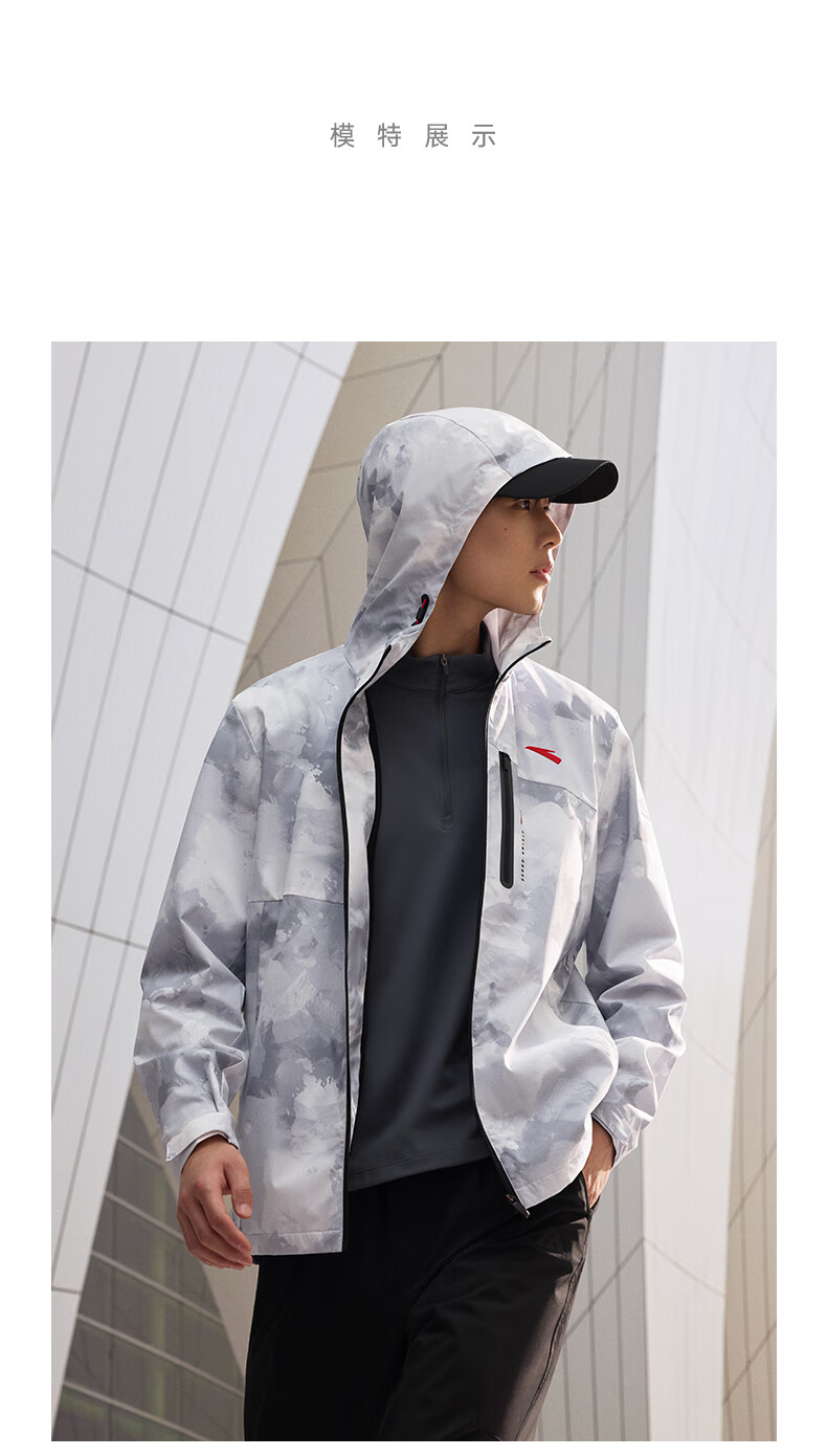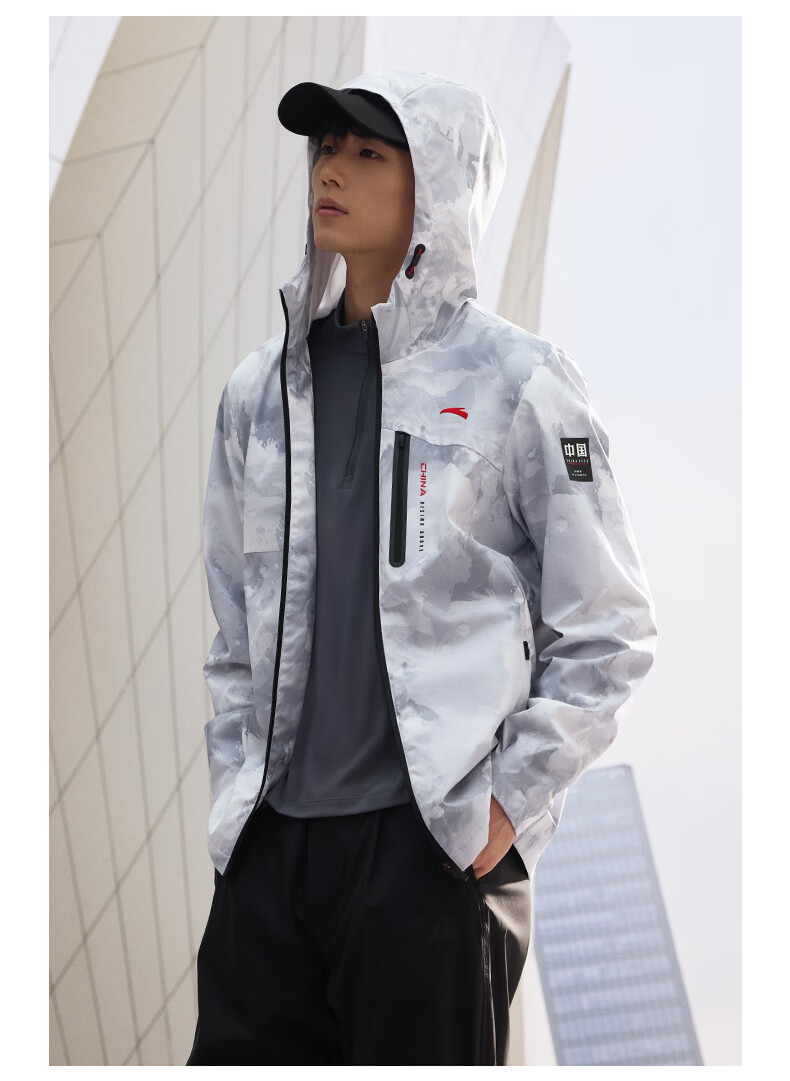 安踏防泼水外套丨梭织运动上衣男冬季新款连帽夹克上衣152447617N