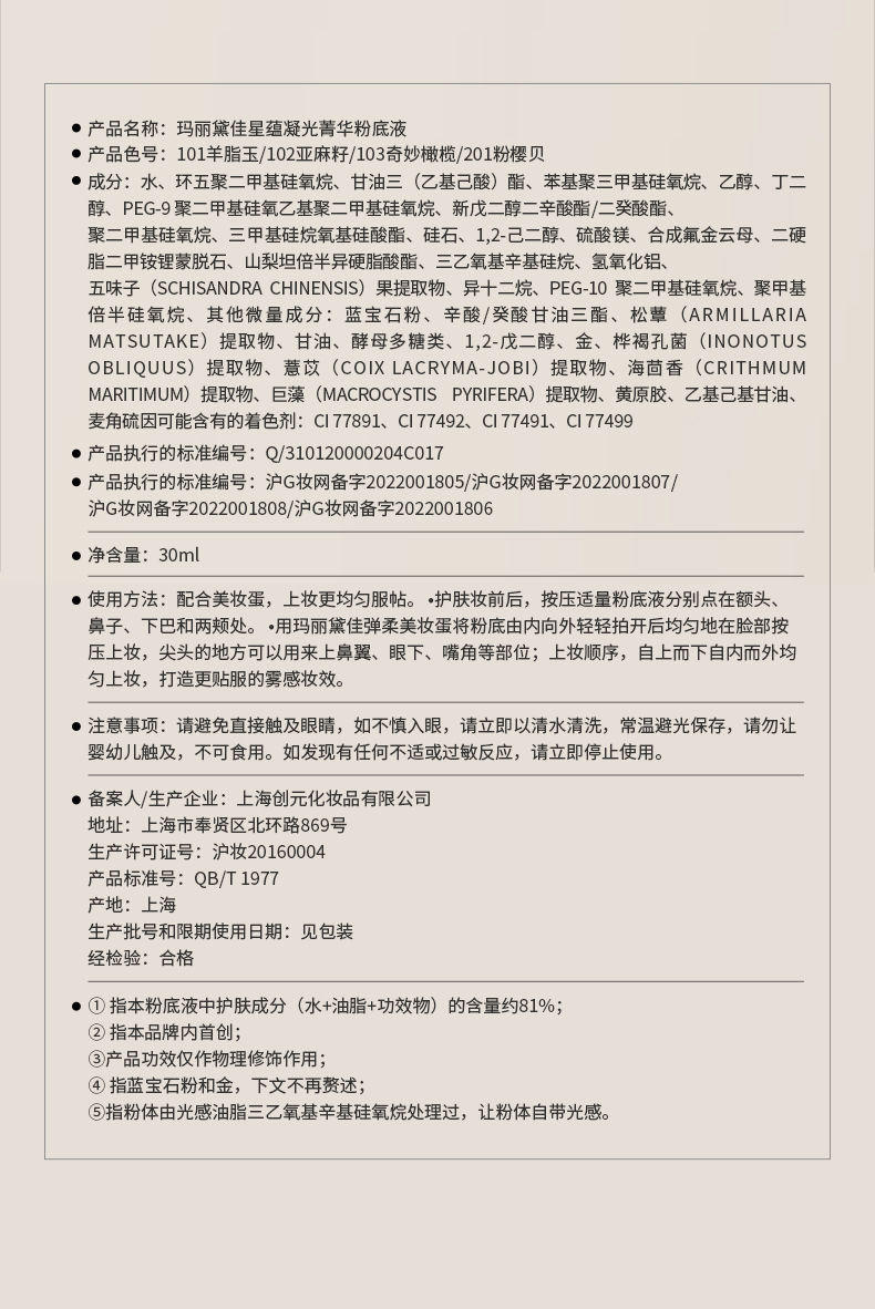 玛丽黛佳星蕴凝光菁华粉底液30ml