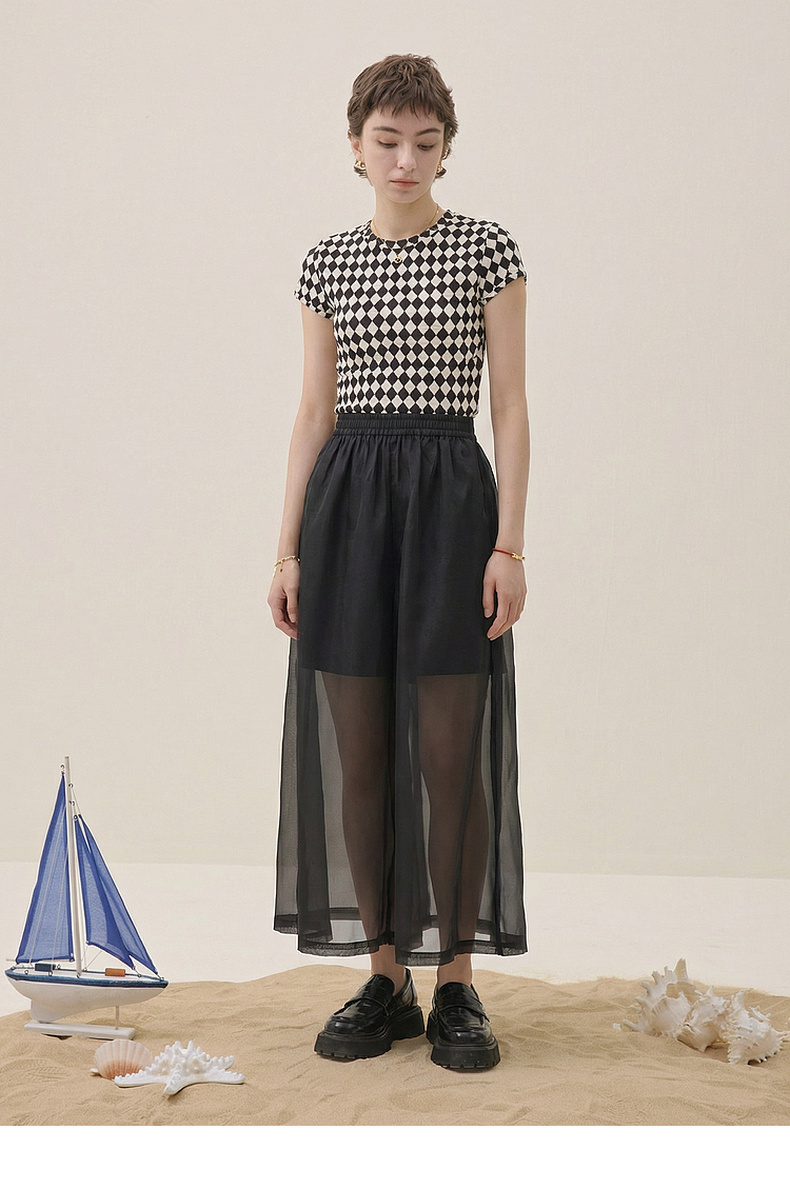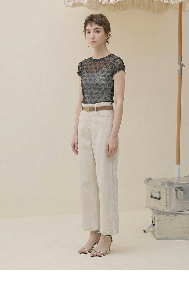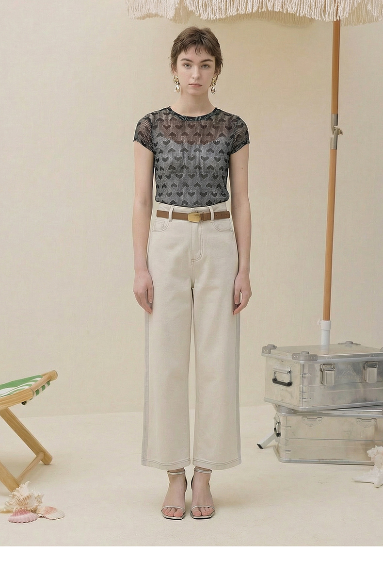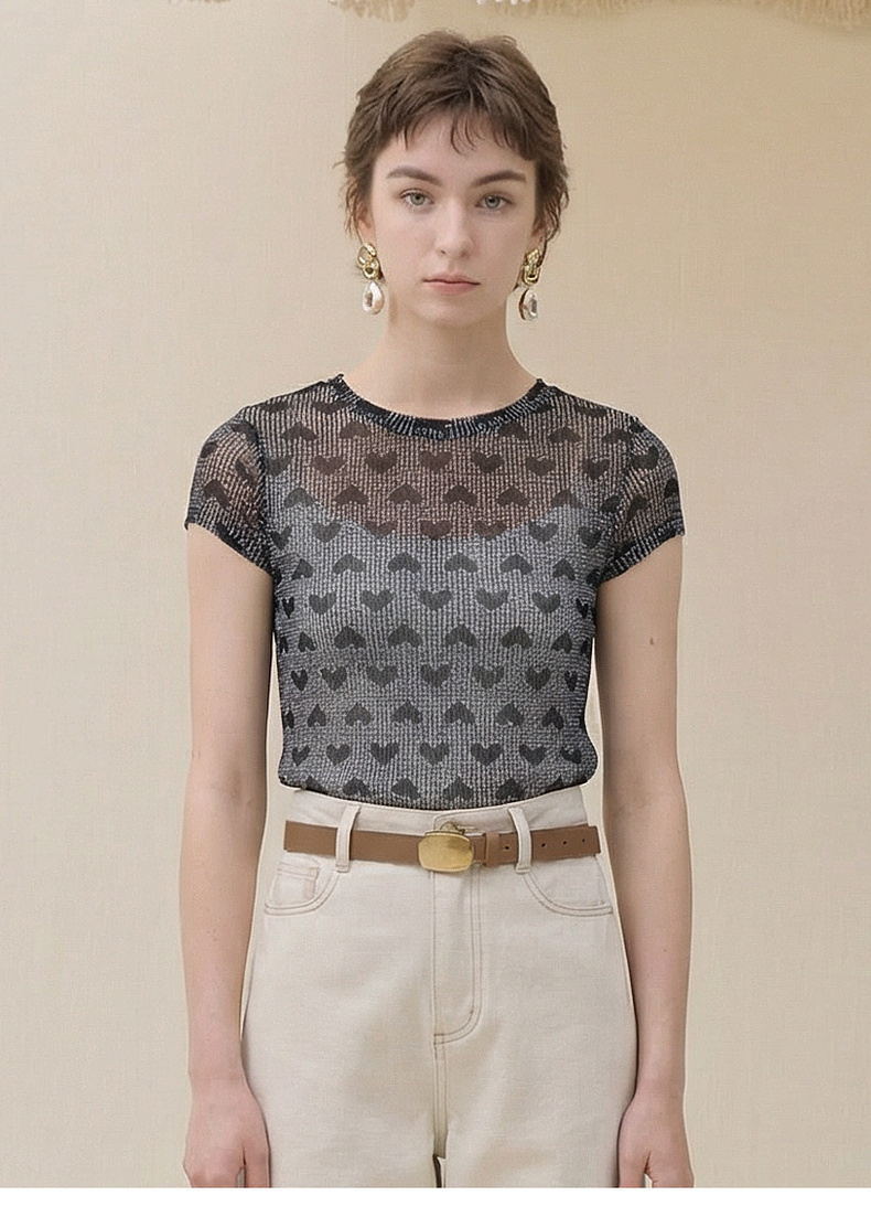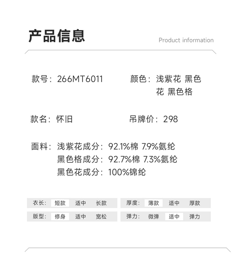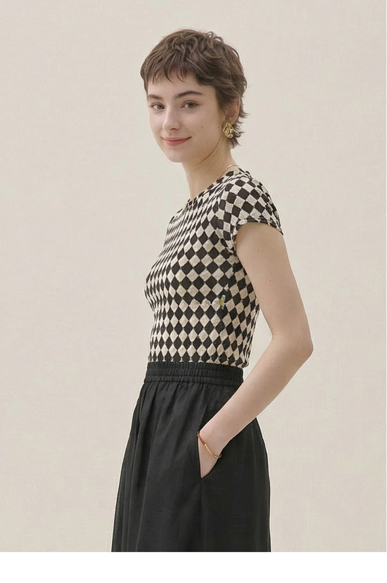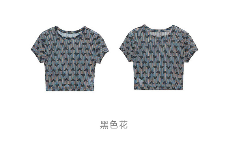 谜底印花T恤短袖2026年夏季新品复古弹力短款亲肤上衣女266MT6011