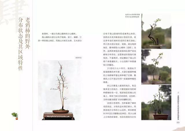 作者彭达经多年摸索、学习、实践,对老鸦柿从野生分布、园圃移栽、种植、养护、培育、繁殖、制作以及老鸦柿盆景的未来发展方向及前景等,全方位总结出一系列行之有效的经验方法和观念观点,供大家在实践中参考借鉴。