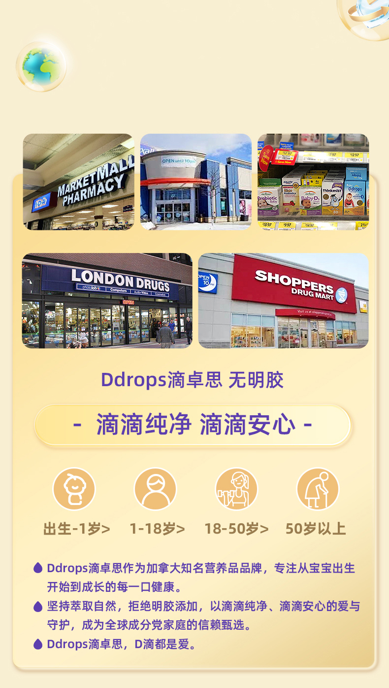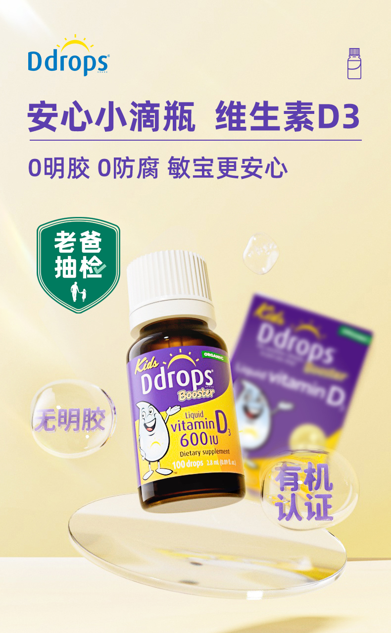 【保税仓】加拿大Ddrops婴幼儿维生素D3滴剂 600IU 2.8ml