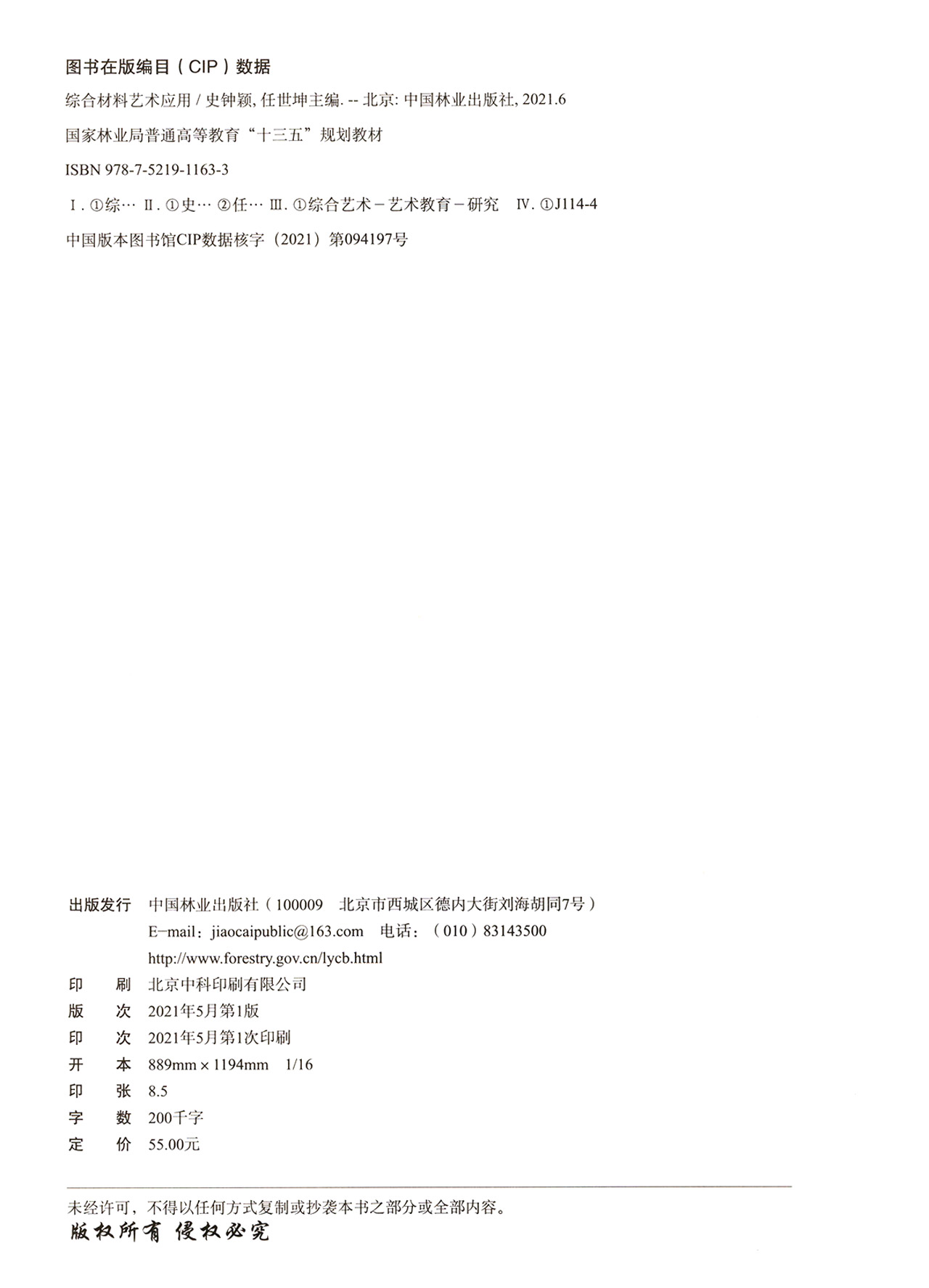 综合材料艺术应用(国家林业和草原局普通高等教育十三五规划教材) 史钟颖//任世坤 1163 中国林业出版社