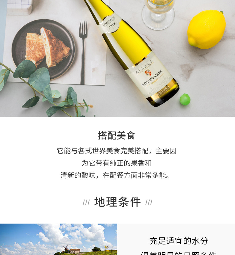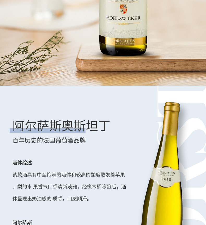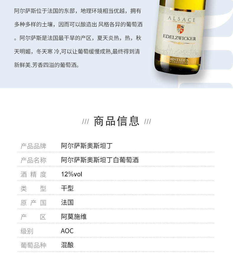 【法国进口】阿尔萨斯奥斯坦丁白葡萄酒混酿型2019年12%vol 750ml/瓶