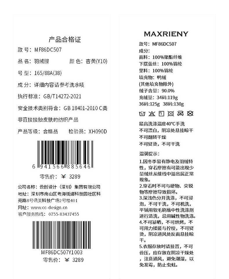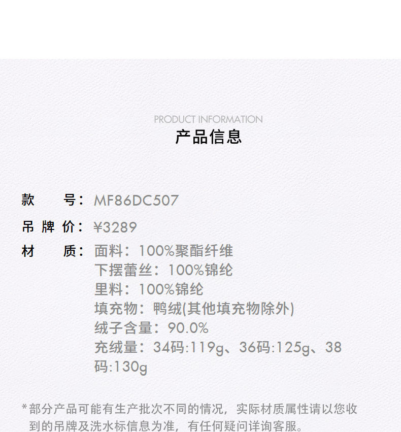 玛克门店发货:MAXRIENY云朵龟背羽绒服女(货号:MF86DC507)
