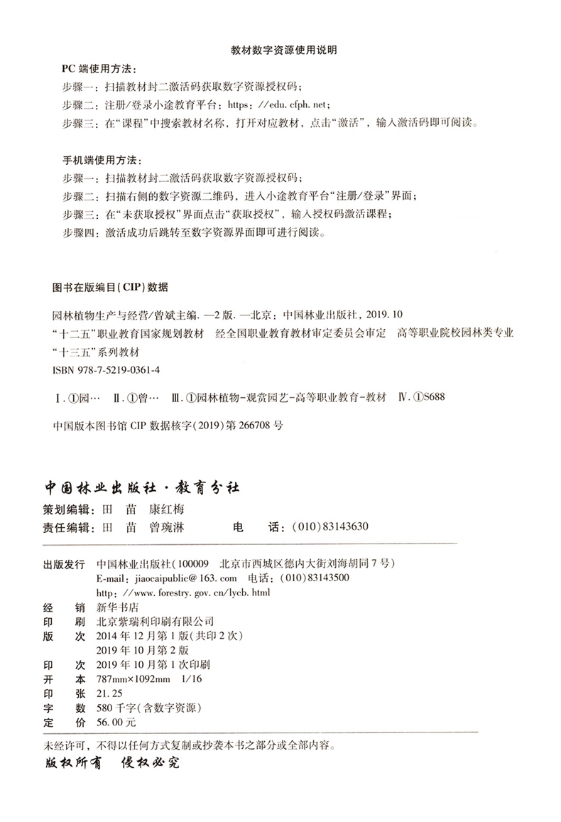 园林植物生产与经营 第2版(等职业院校园林类专业十三五系列教材) 曾斌 0361 中国林业出版社