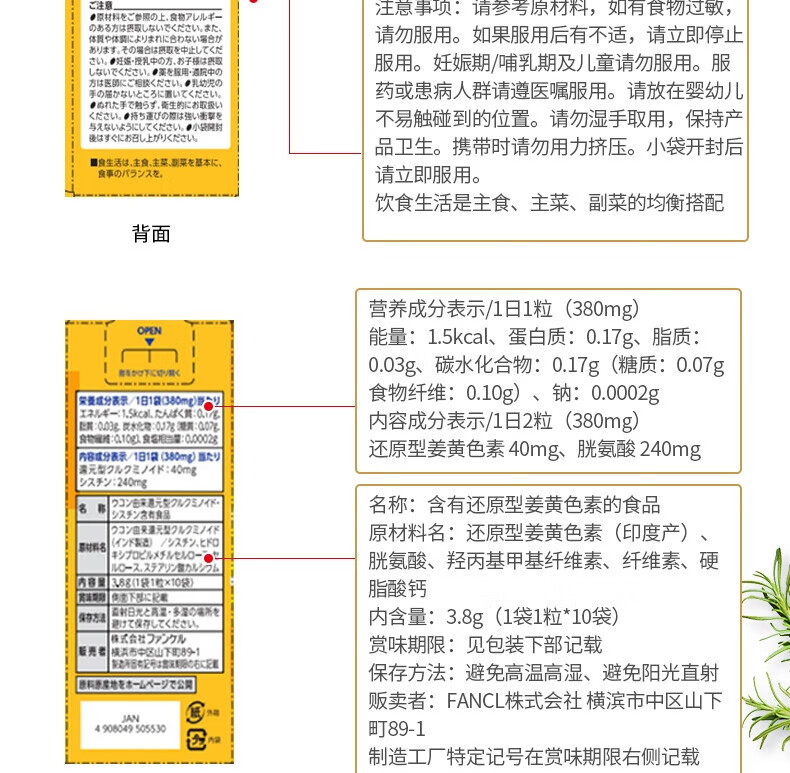 【保税仓】FANCL芳珂 姜黄素胶囊 10粒