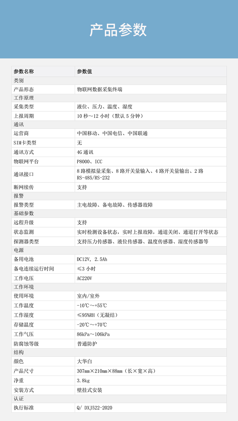 物联网数据采集终端DH-HY-WSM-1008(4G版本+8路模拟量采集)