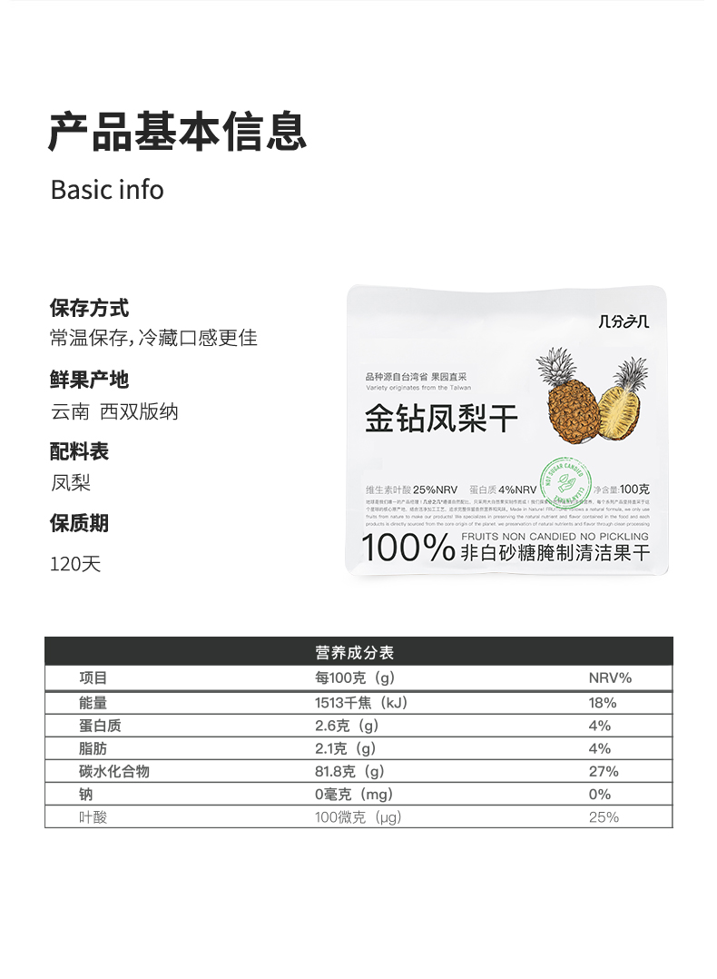 【拍4件到手99,单拍不发货】几分之几 凤梨干/蓝莓干/西梅干/无花果干/蔓越莓干/香梨干/杏干/龙眼干