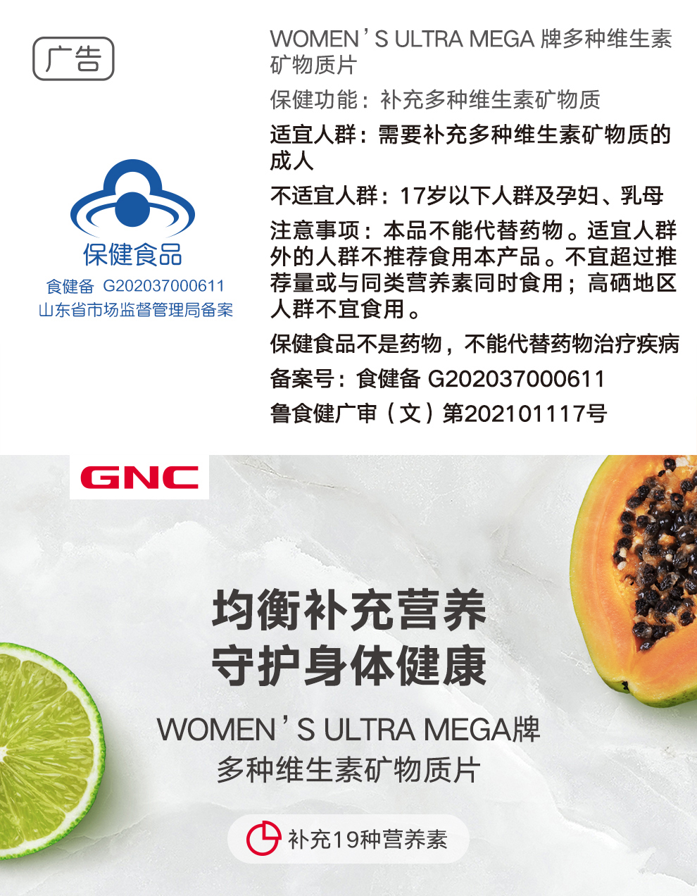 GNC 健安喜 WOMEN'S ULTRA MEGA 多种维生素矿物质片 60g/瓶