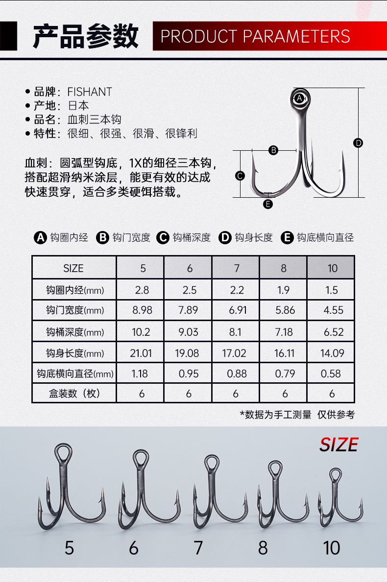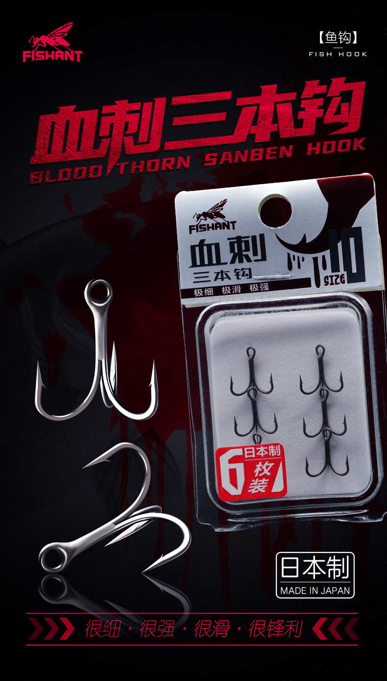 飞蚂蚁血刺纳米涂层路亚三本钩三爪锚钩有到刺锋利鱼钩硬饵假饵钩