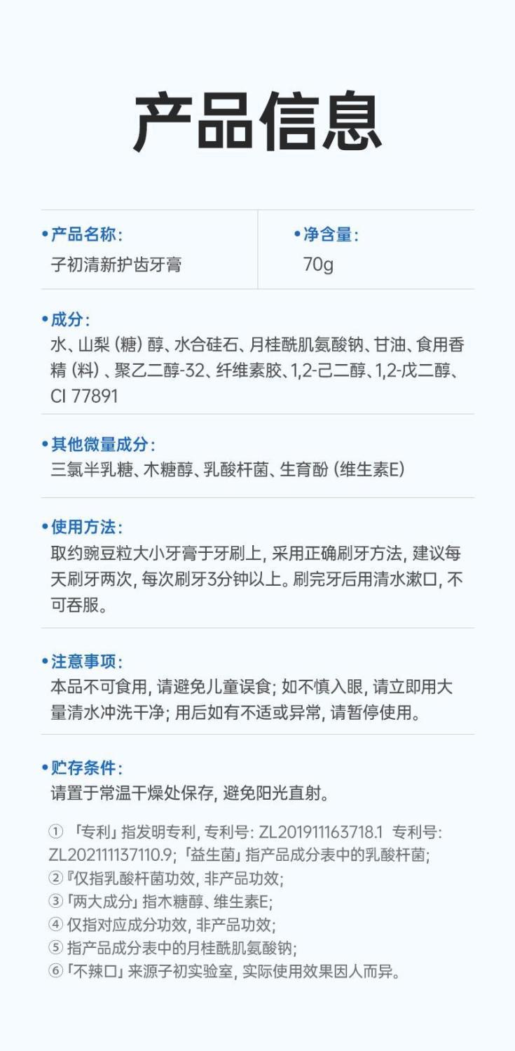 优选丨【祖玛珑同款香!无氟护齿】子初清新护齿牙膏70g/支*2 敏感牙适用