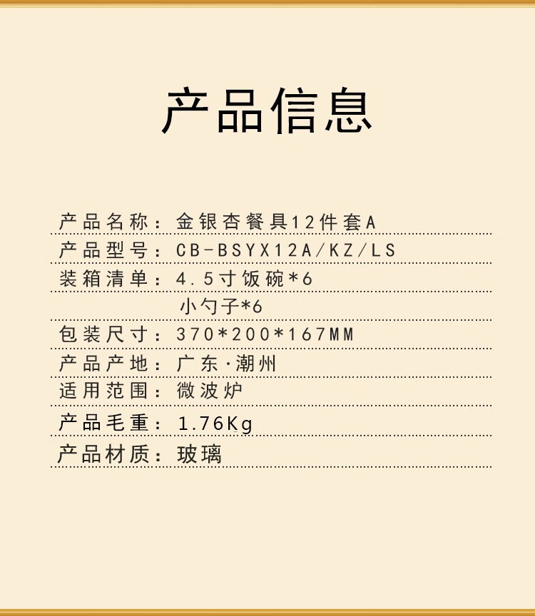 康宁 冰萃玲珑 金银杏餐具12件套A