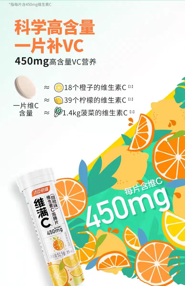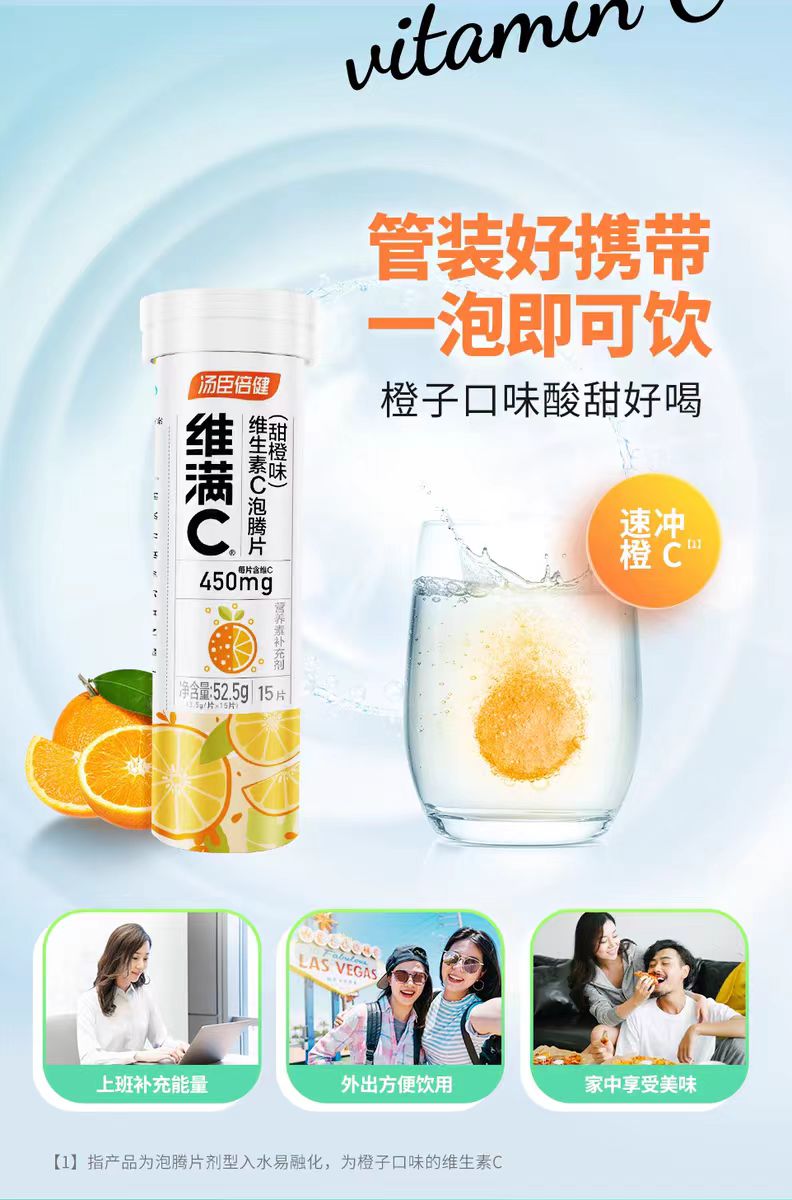 汤臣倍健旗下-维满C维生素C泡腾片(甜橙味)(15片)*3只装