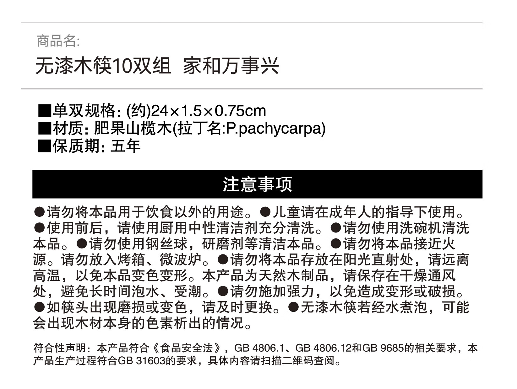 NITORI宜得利家居 厨房餐厅筷子无漆木筷10双组 家和万事兴