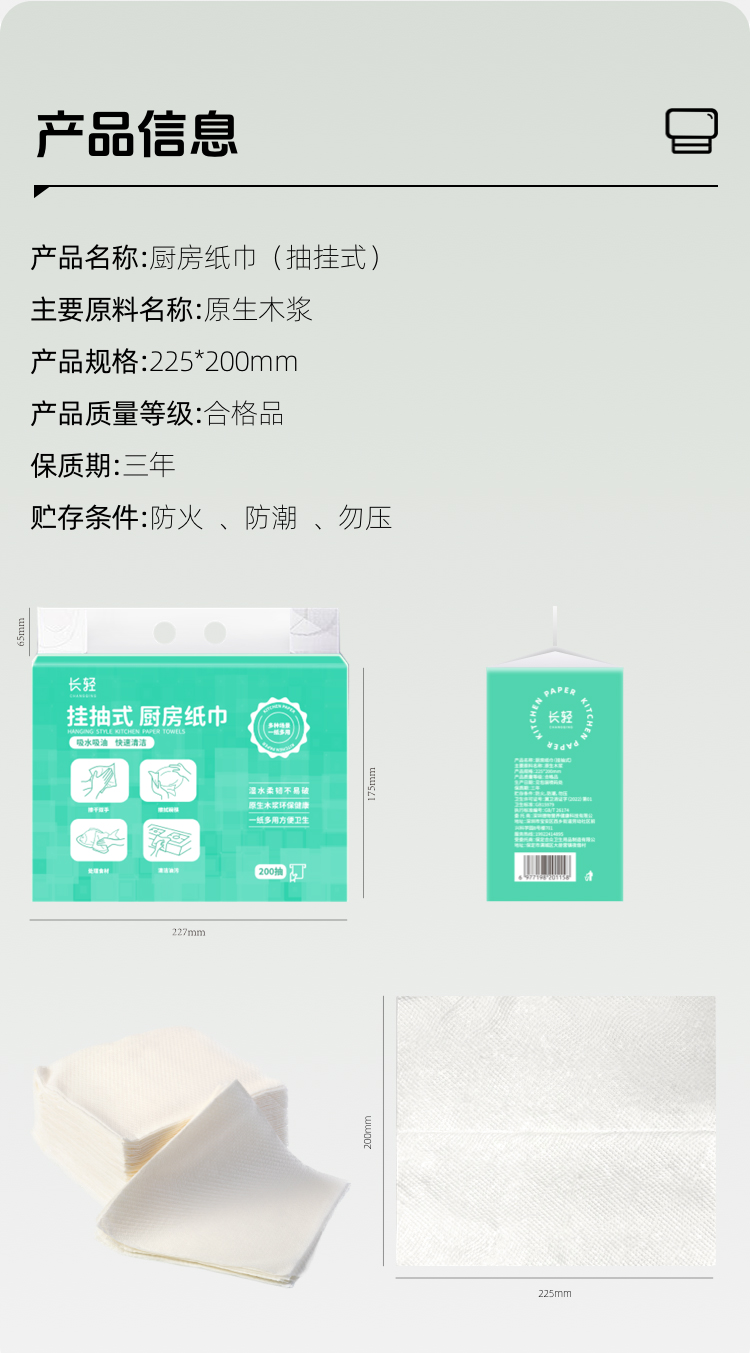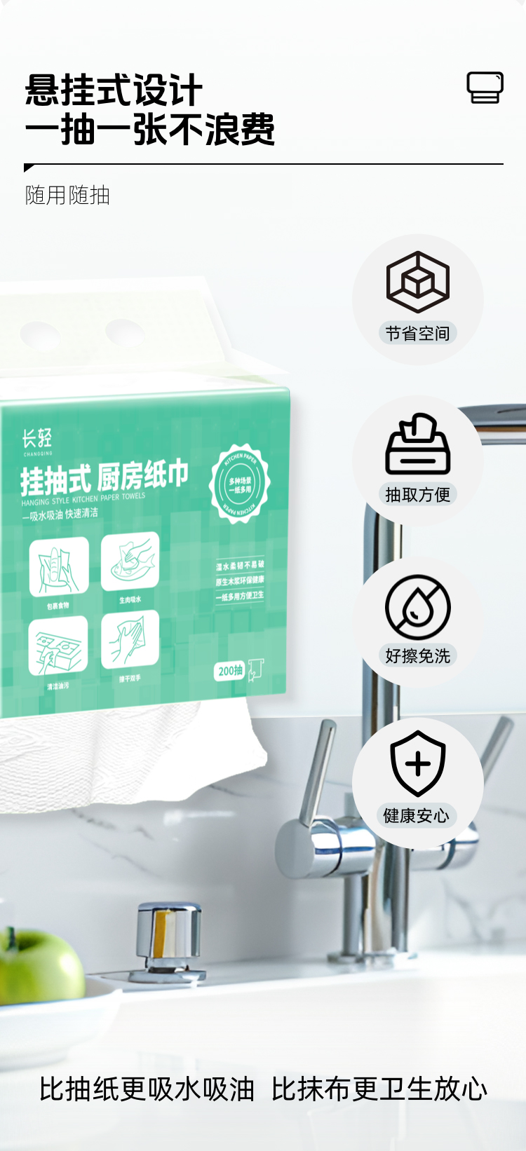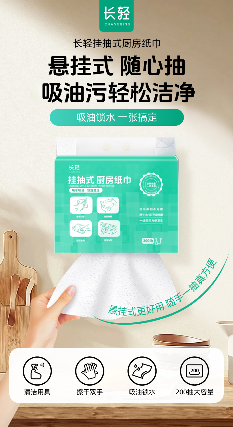 【300积分+26元】长轻 挂抽式厨房纸巾 200抽/袋 吸油锁水一张搞定