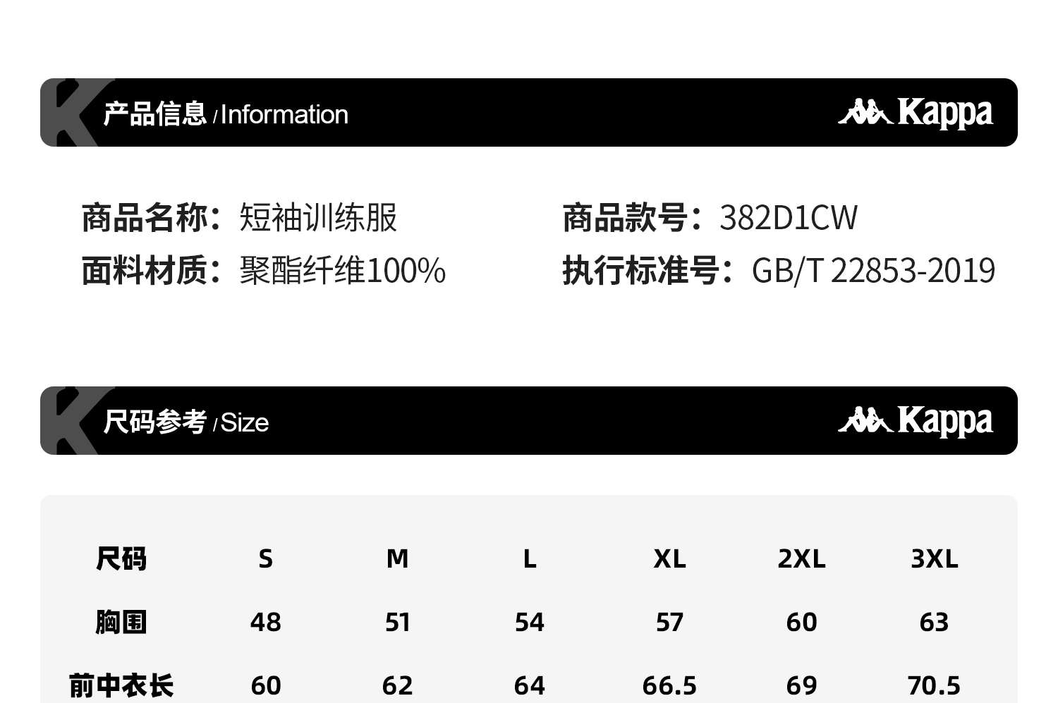 Kappa 男2025新款训练短袖球衣夏季休闲透气运动拼接t恤382D1CW