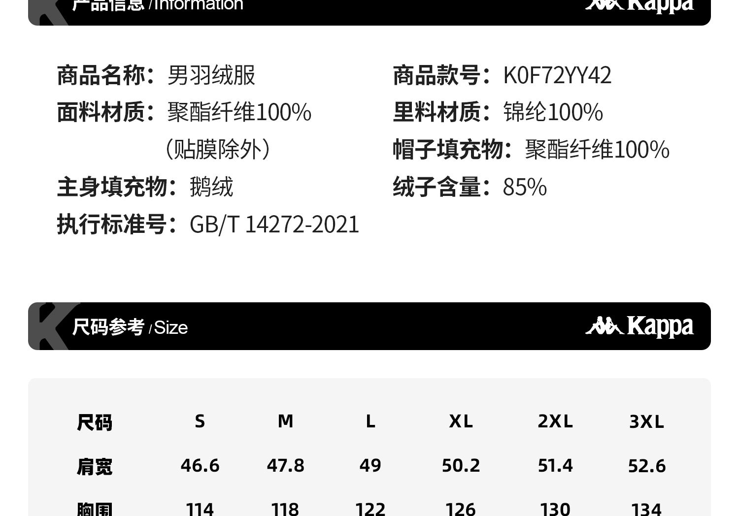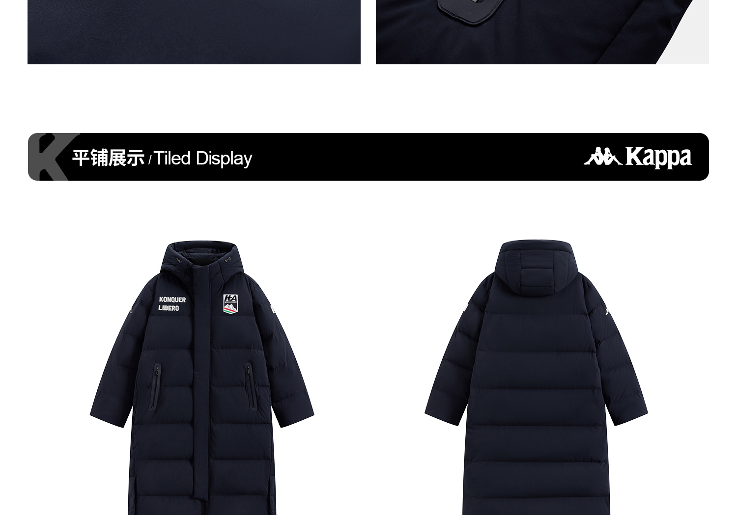 Kappa 2025冬季新款 鹅绒 长款连帽运动羽绒服 男K0F72YY42