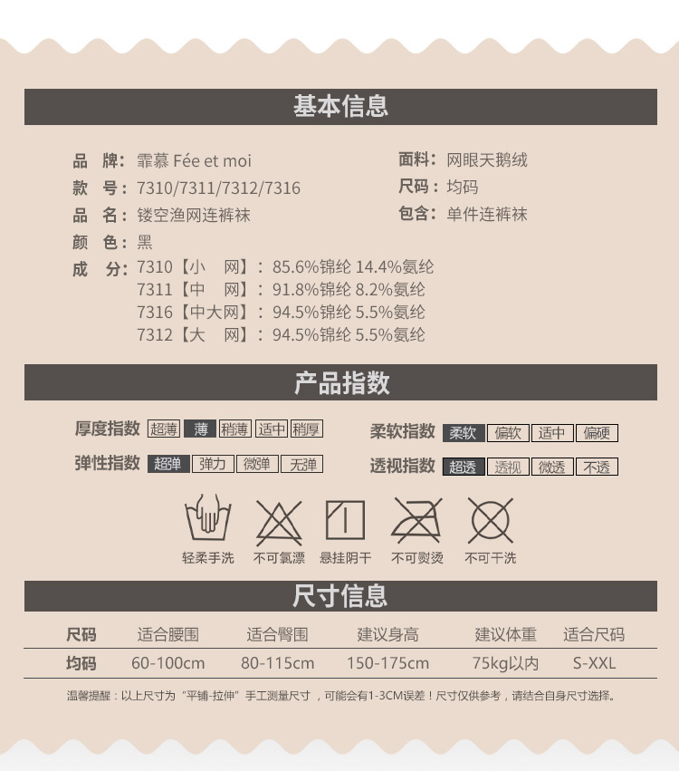 【情趣内衣】霏慕镂空渔网袜小网中网中大网大网连裤袜7310-7311-7312-7316