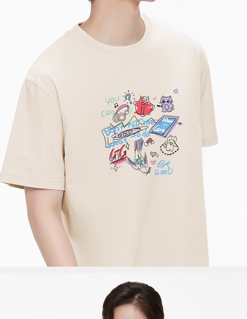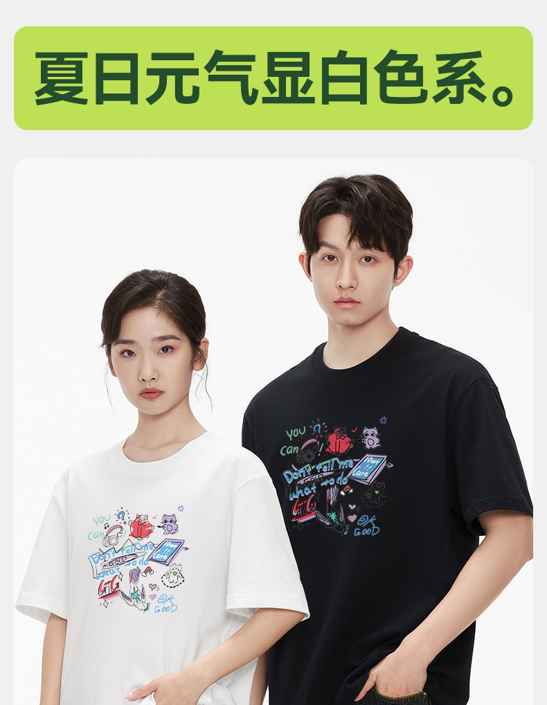 「棉的美学」正肩纯棉印花T恤夏季新款休闲舒适透气街头上衣