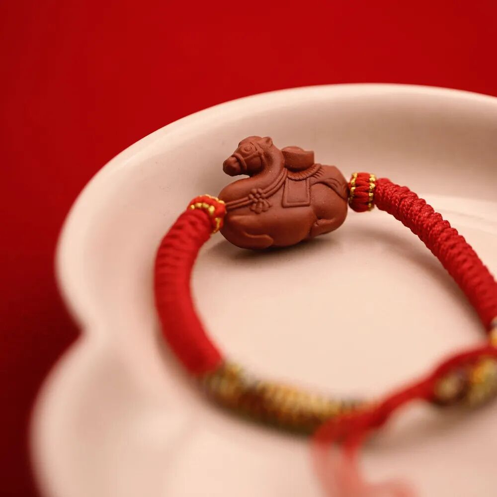 搭配禄佑财马,绳间缀金色、蓝色、红色三色线圈,各蕴深意:金色承C源亨通之愿,蓝色纳平安之福,红色聚家庭和睦之喜,三色辉映,将人生祈盼尽数囊括。