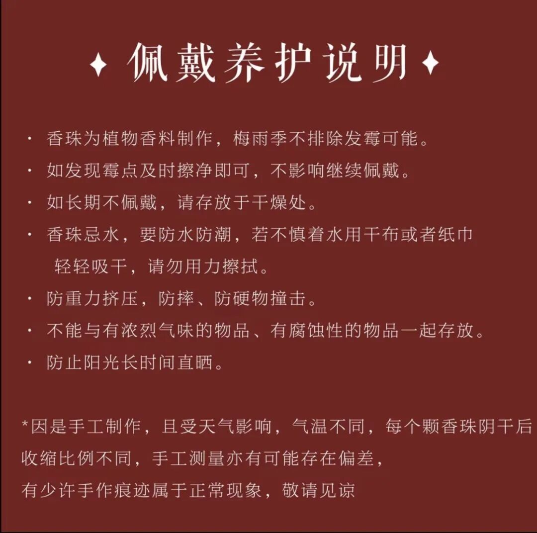 佩戴颈间,恰似将福禄祥祯汇于一身,合香之气清润绵长,美好愿望随身流转,愿佩戴者马上盈门、祯祥汇聚。