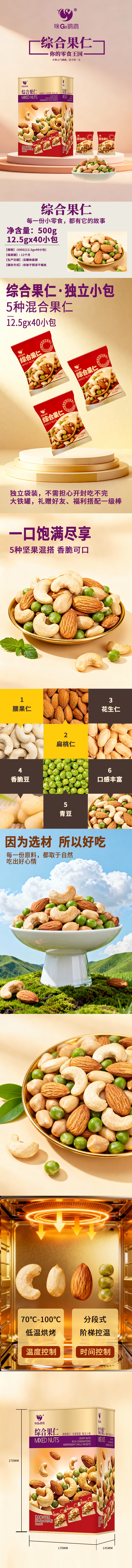【咪GO鹦鹉】综合果仁500g (12.5gX40小包:扁桃仁,腰果仁,花生仁,豌豆,)