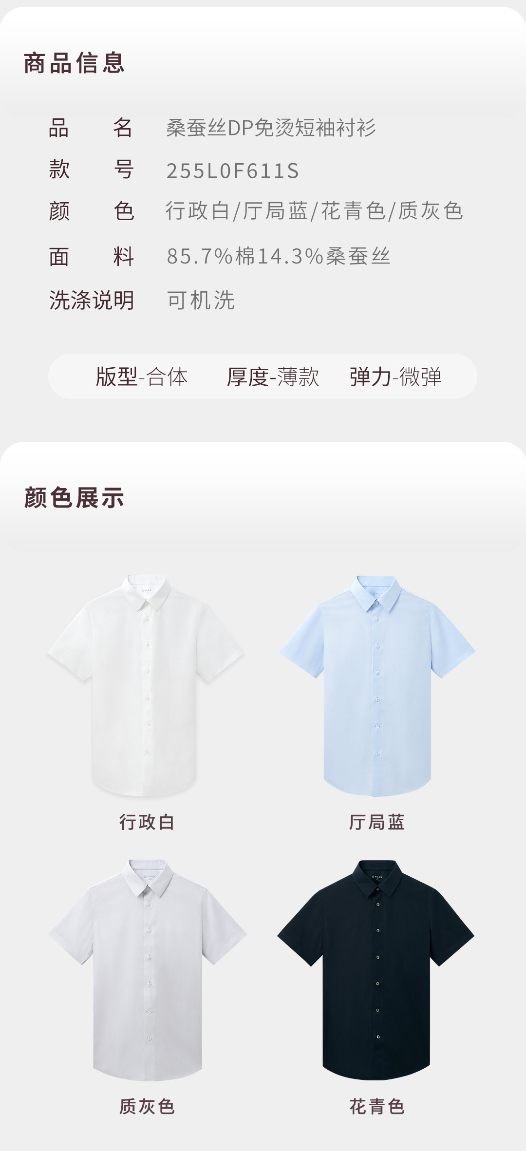 【总裁七号】桑蚕丝DP免烫高端短袖衬衫255L0F611S