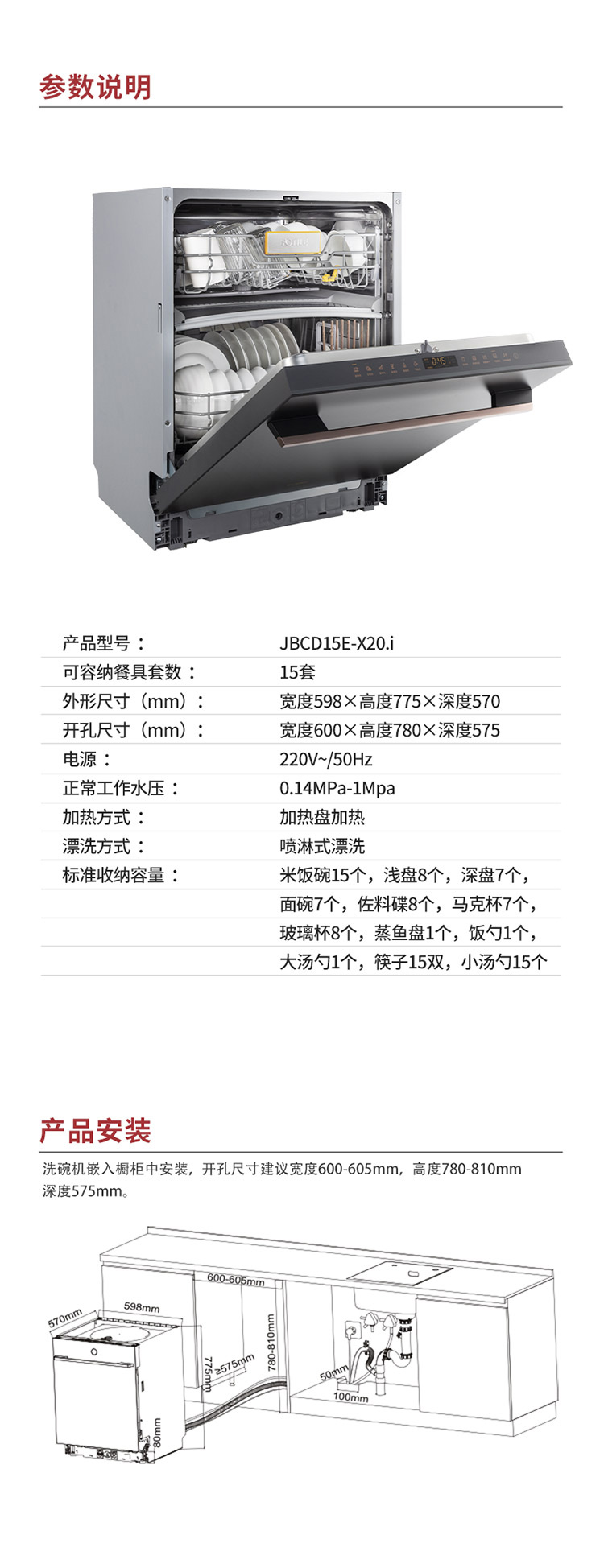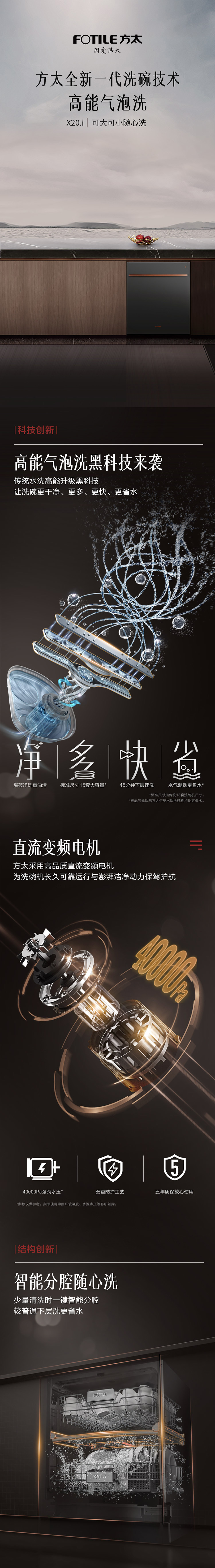 方太/洗碗机/X20.i/家用 高能气泡洗15套大容量 四翼喷淋臂 智能分腔节能洗 15套分腔WiFi智控 嵌入式洗碗机