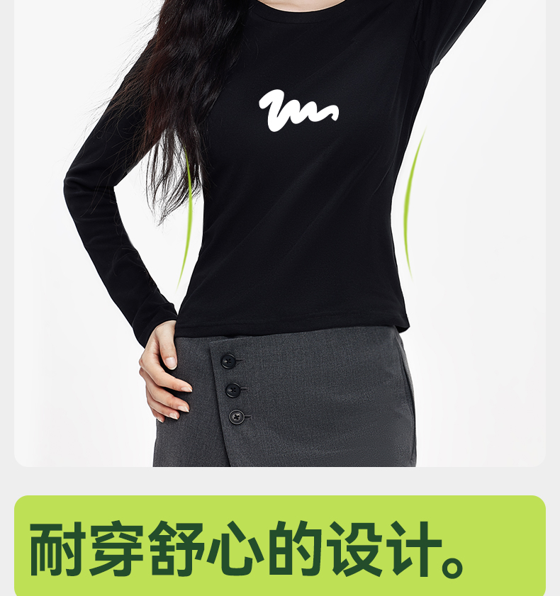 「棉的美学」辣妹修身莱卡棉打底衫印花正肩长袖女T恤内搭上衣