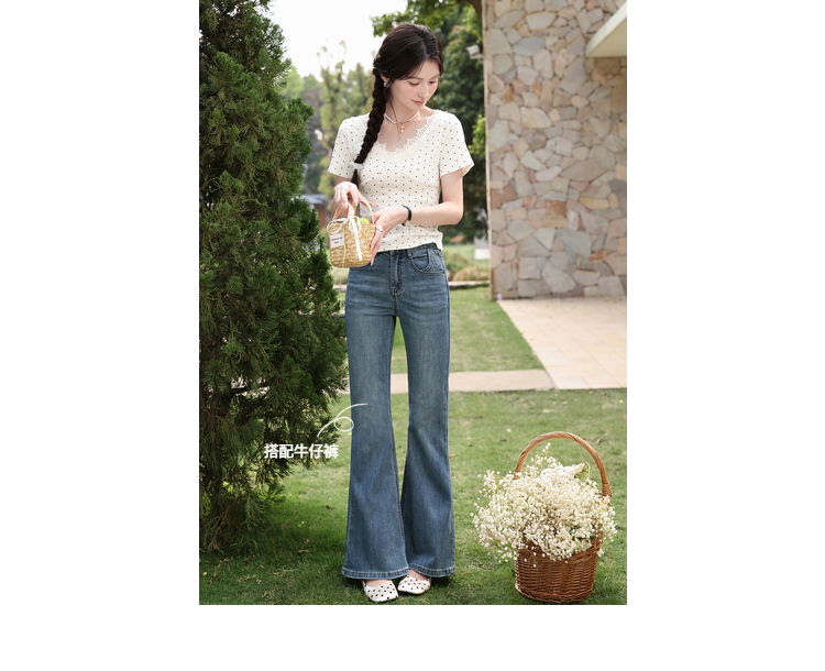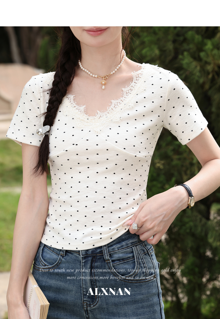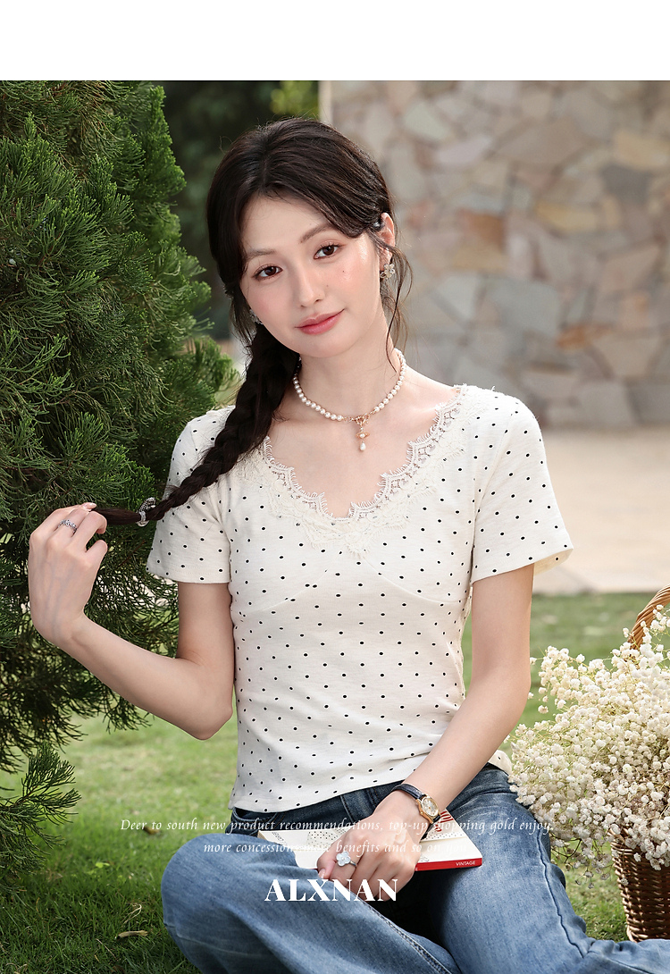 鹿向南「墨法花序」高级感黑色气质V领短袖T恤女夏季新款显瘦上衣