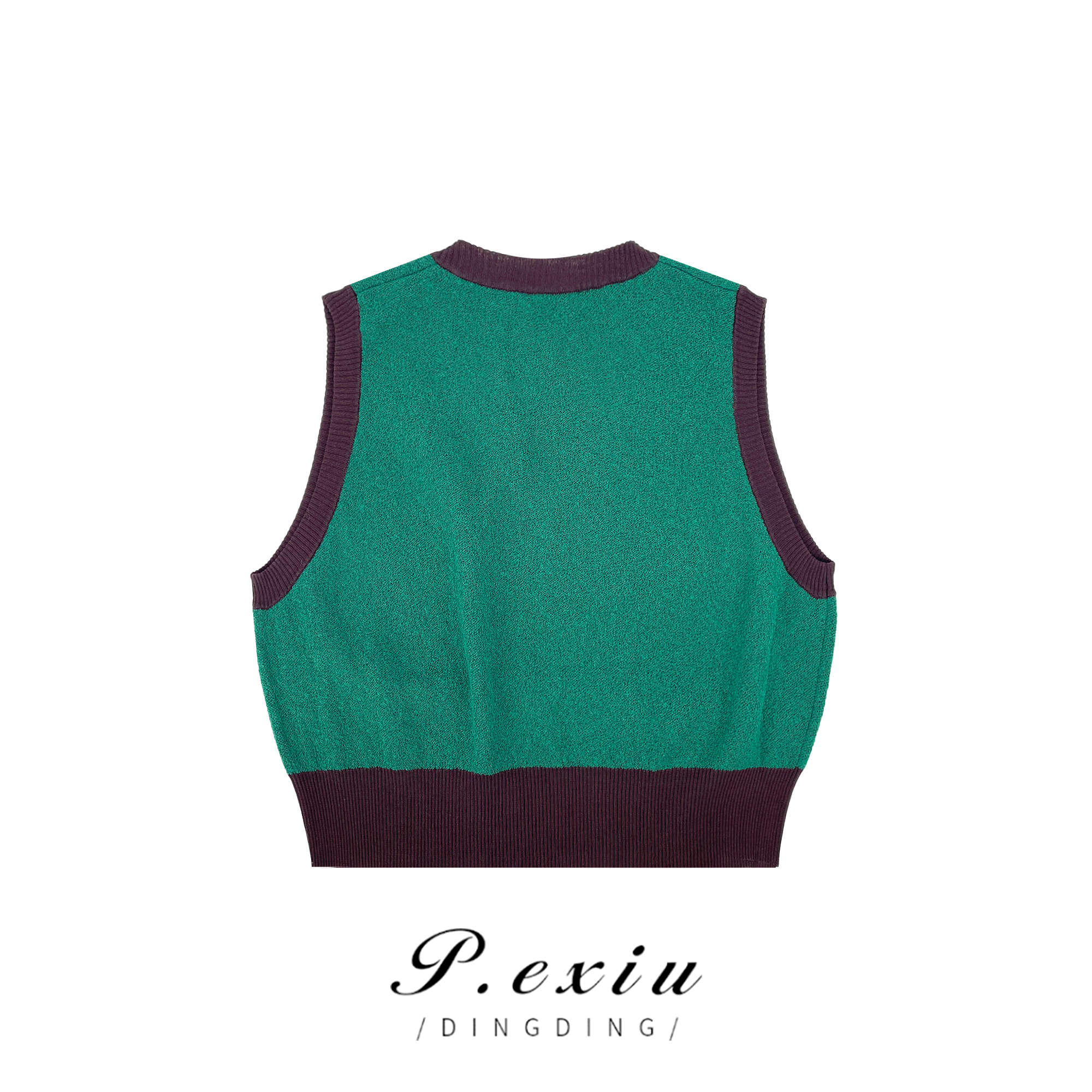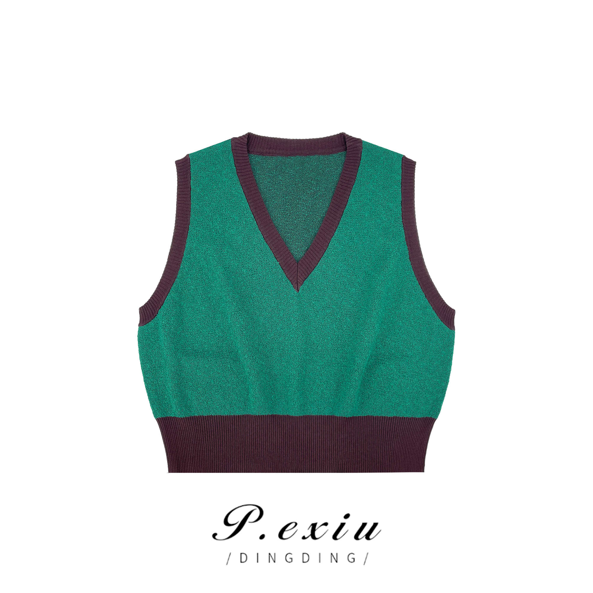 03-3潘依绣丁丁宠粉PanYiXiu/潘依绣秋季百搭时尚撞色V领宽松无袖针织马ZZ0519