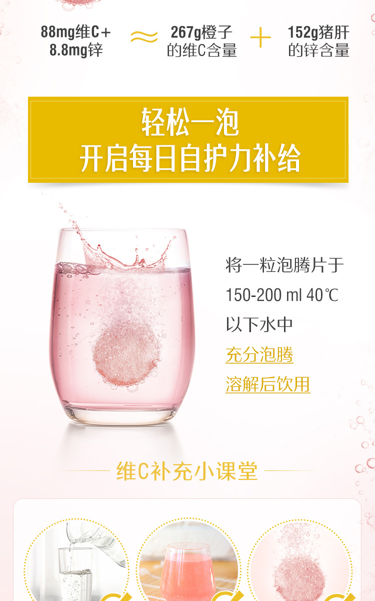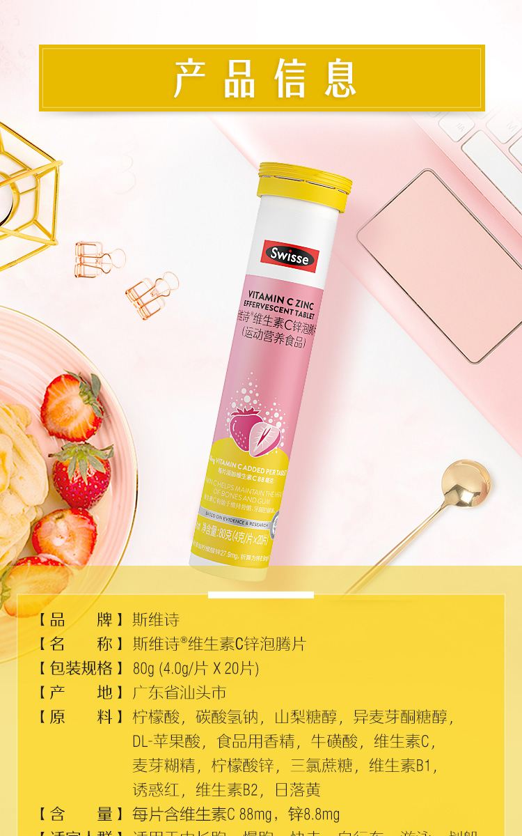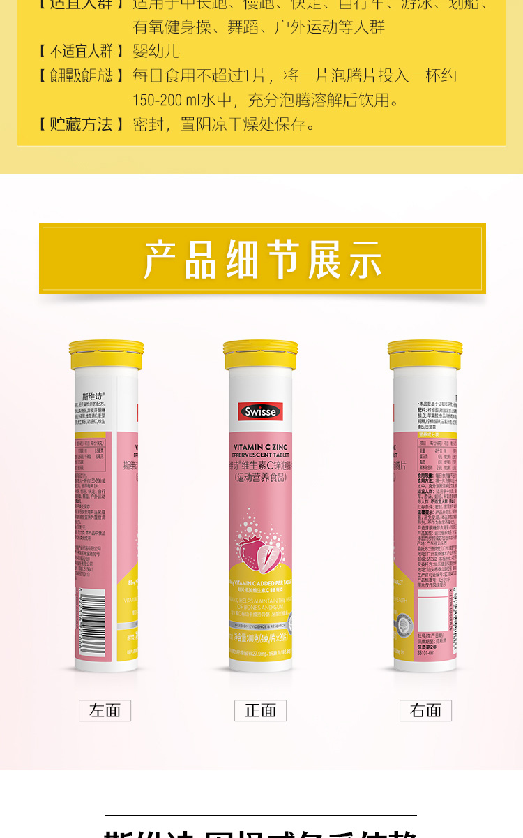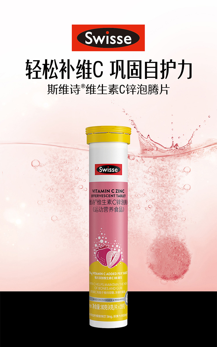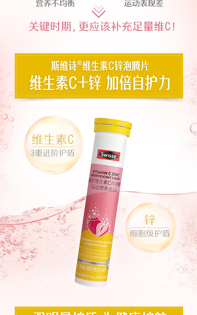 【79元选2件】Swisse斯维诗维生素C锌泡腾片(运动营养食品 耐力类)20片*2支【有效期至26.11.17】