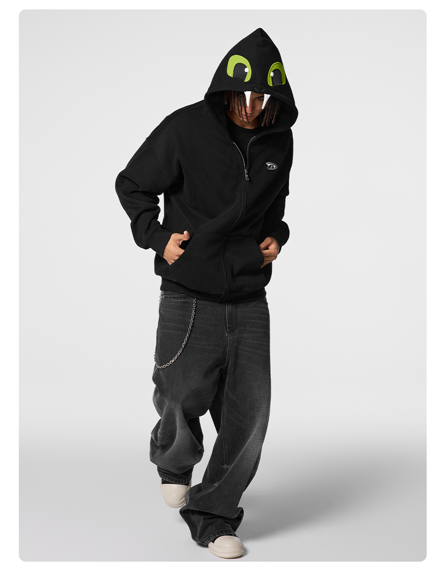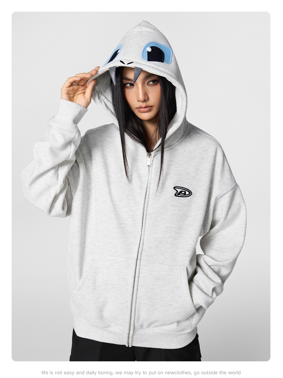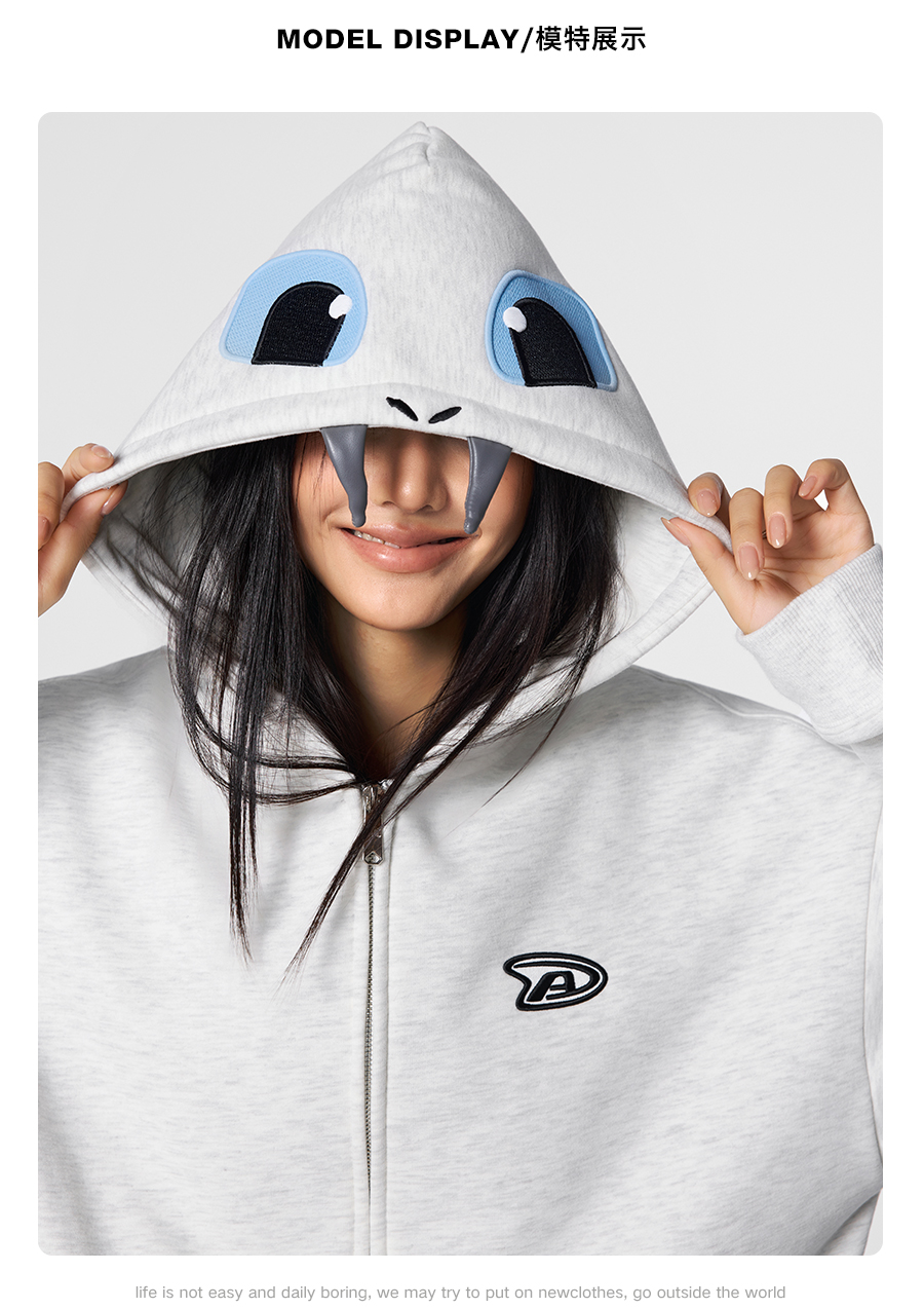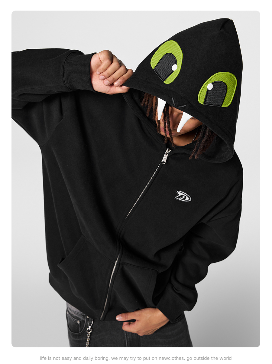 【Achock官方店】复古小恶魔立体连帽卫衣男女新款美式拉链开衫潮