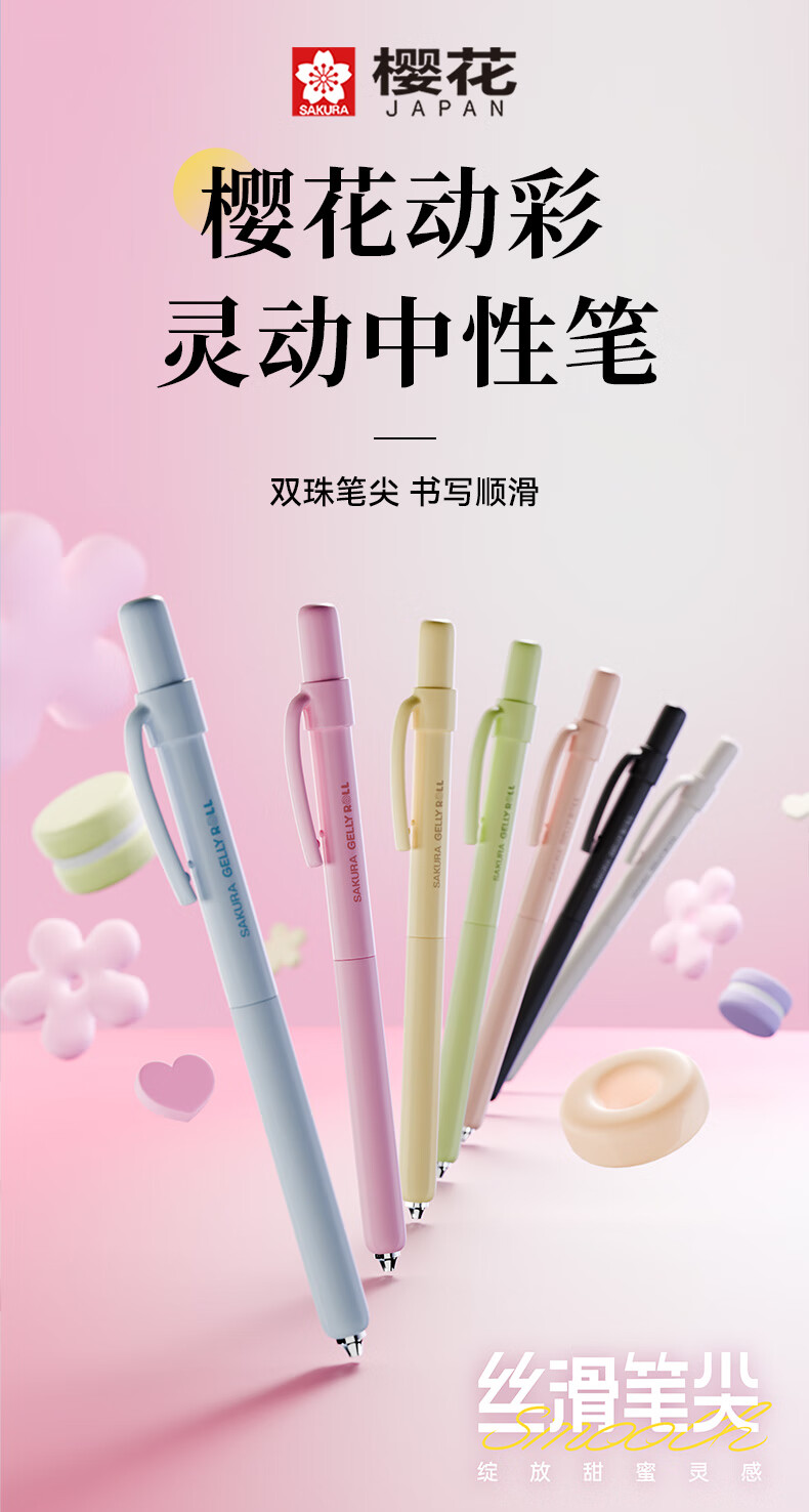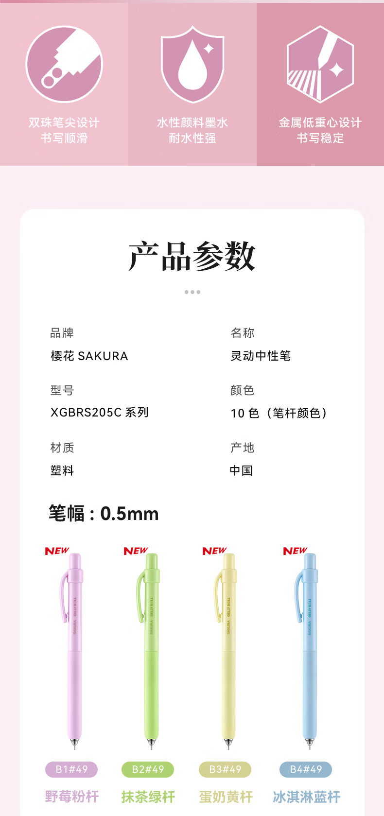 樱花(SAKURA)中性笔整盒12支0.5双珠低重心学生按动式考试刷题笔防水签字笔办公用品水性笔冰淇淋蓝杆_MW