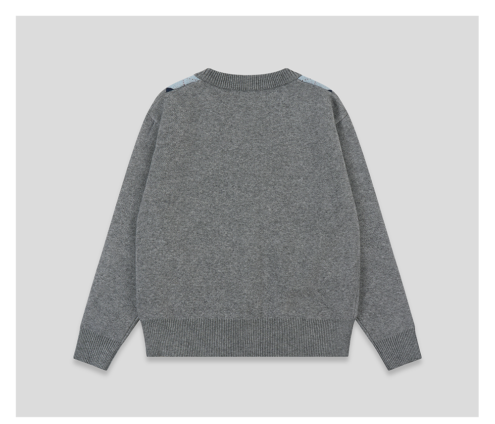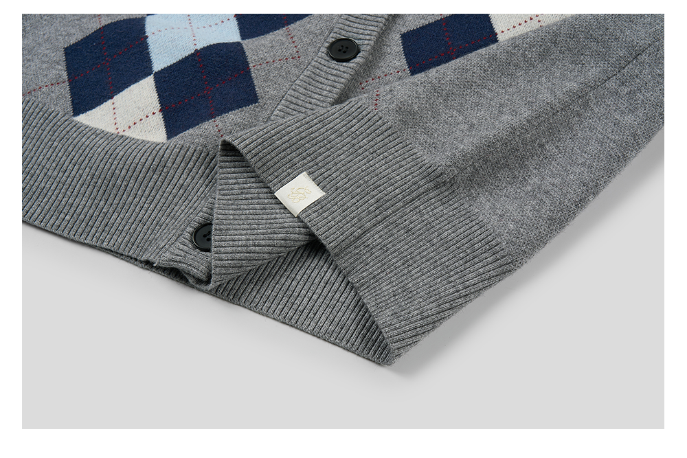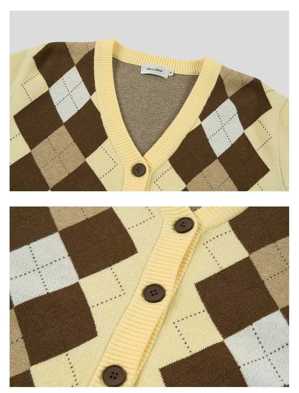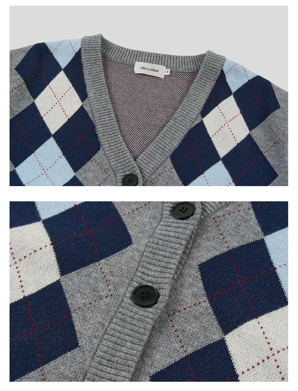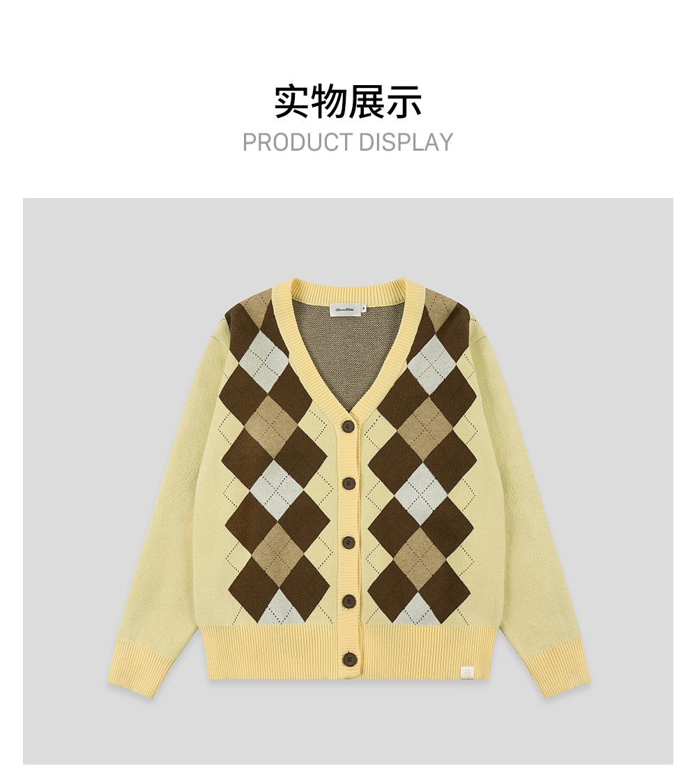 GOODBAI新款复古学院风V领格纹针织长袖开衫女