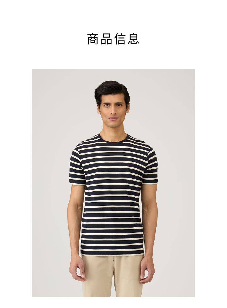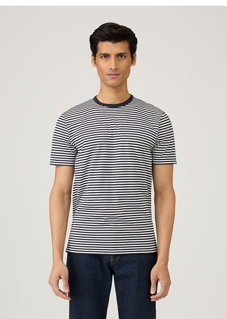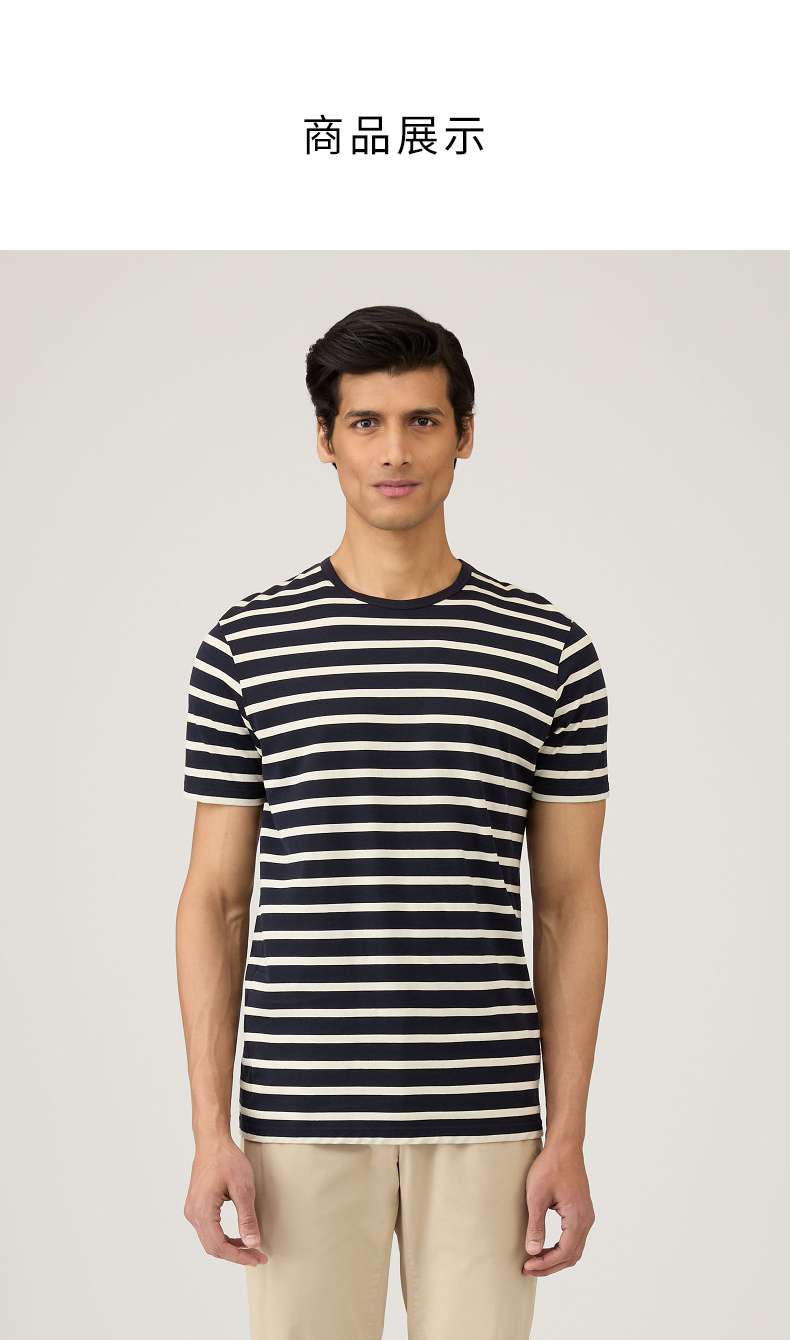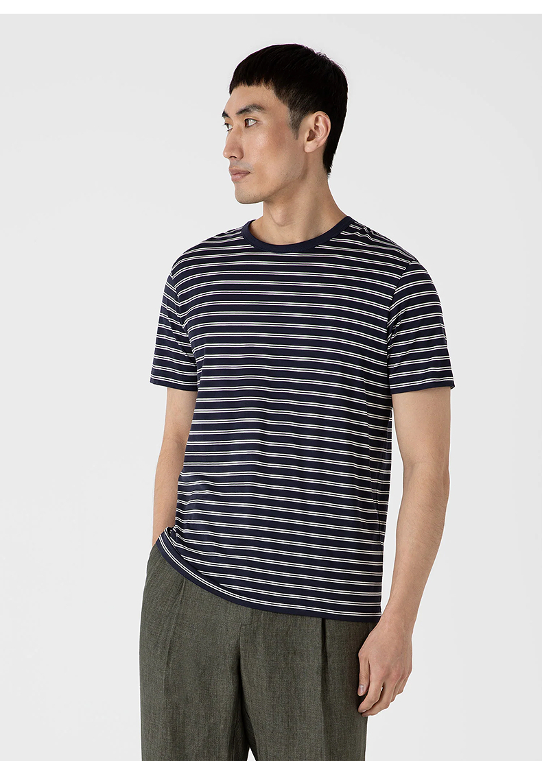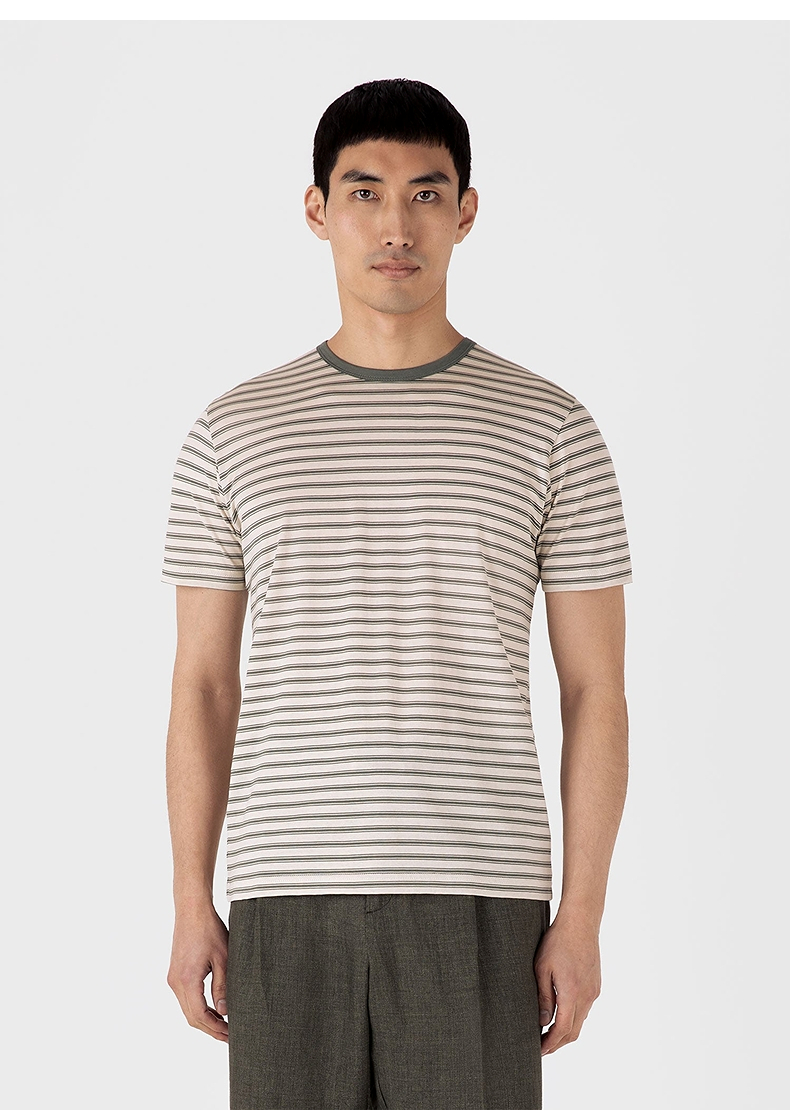 SUNSPEL男士经典款Supima匹马棉圆领条纹短袖经典T恤