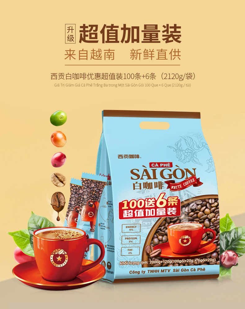【正常发货】【106杯】 西贡白咖啡2120克106条