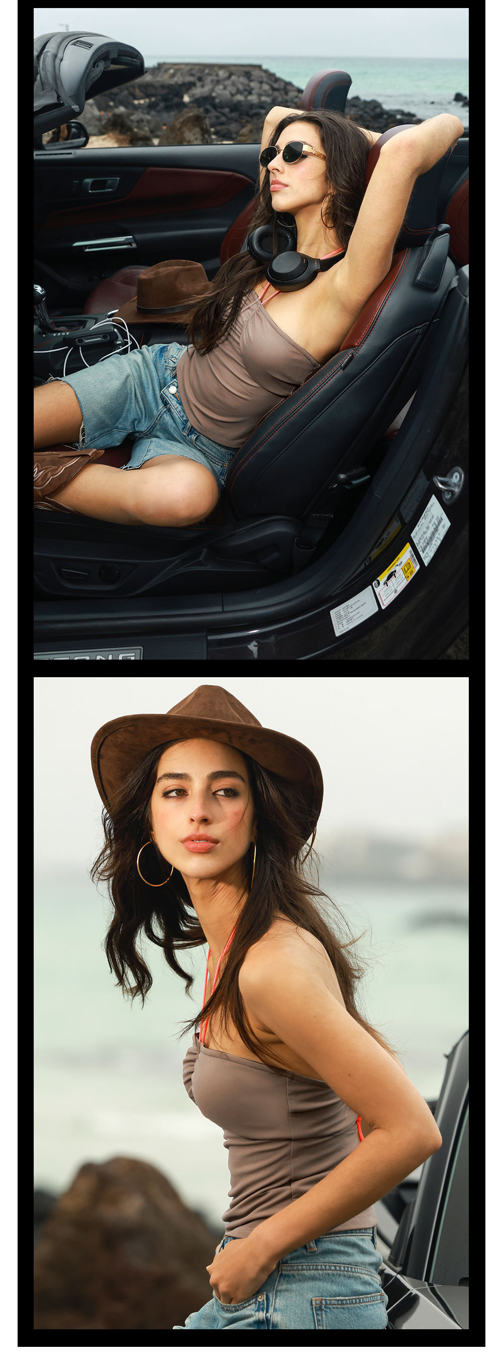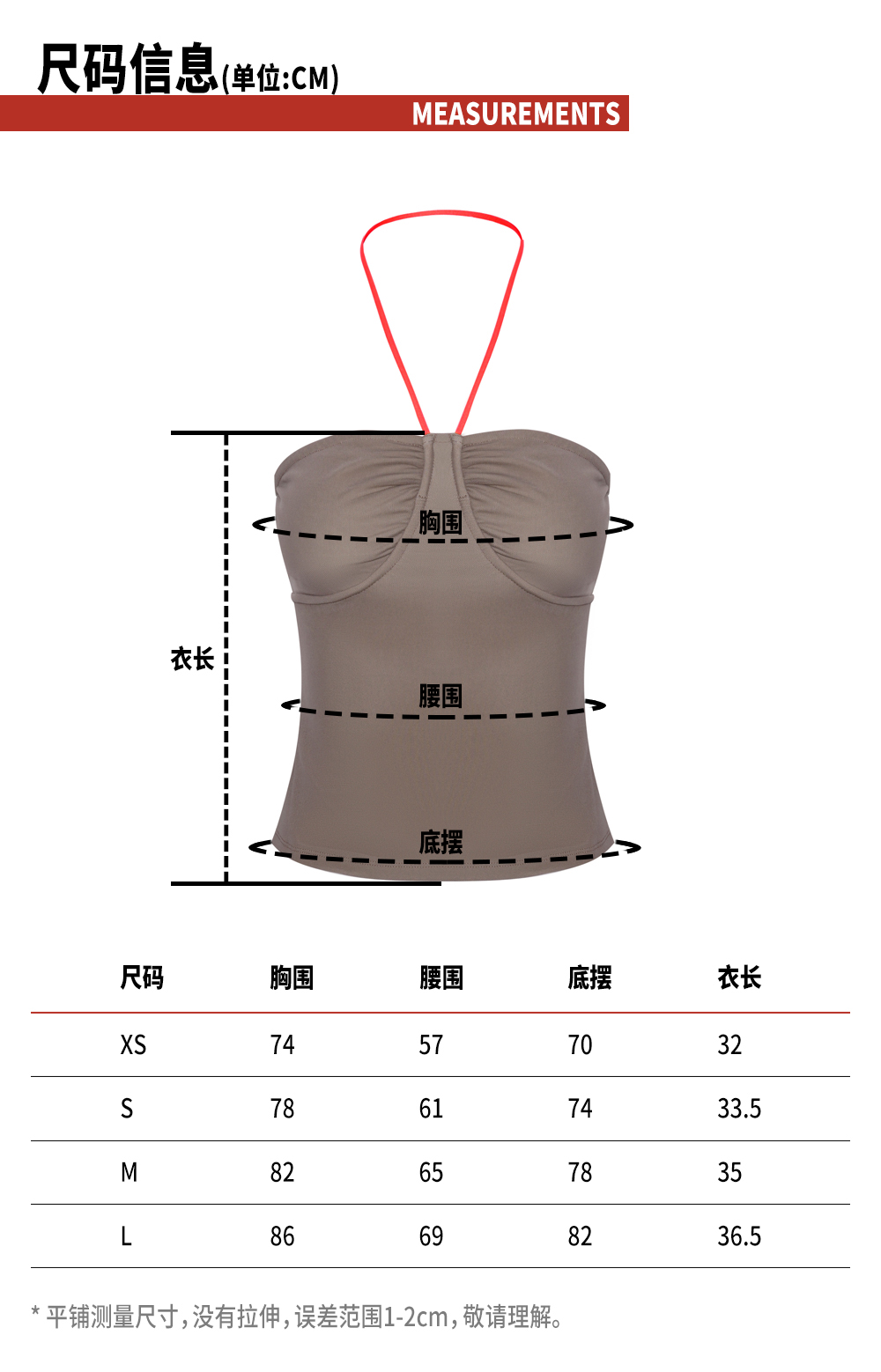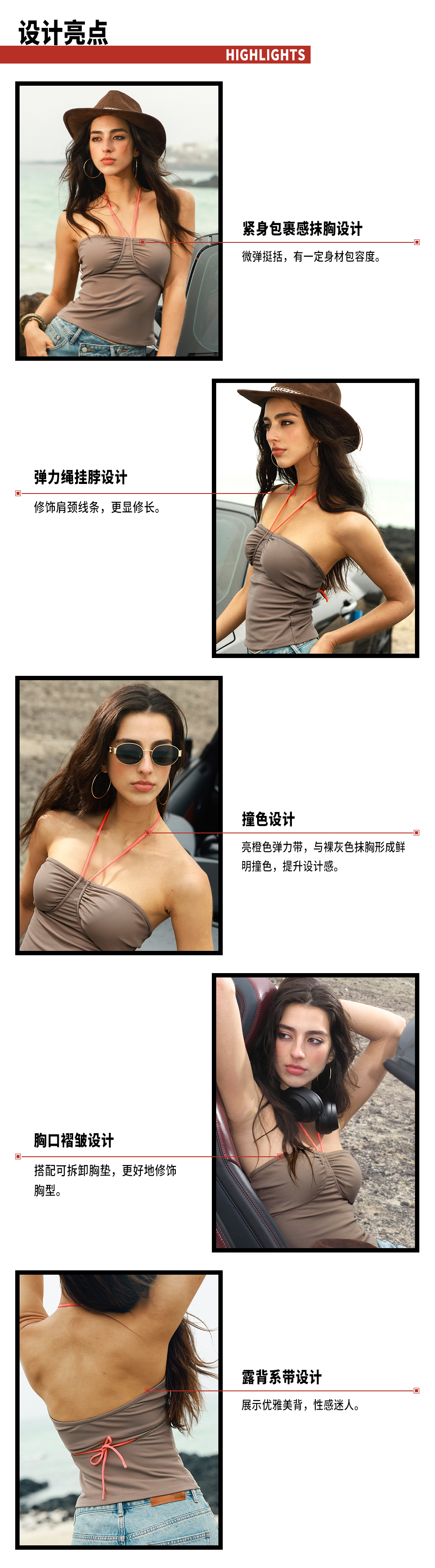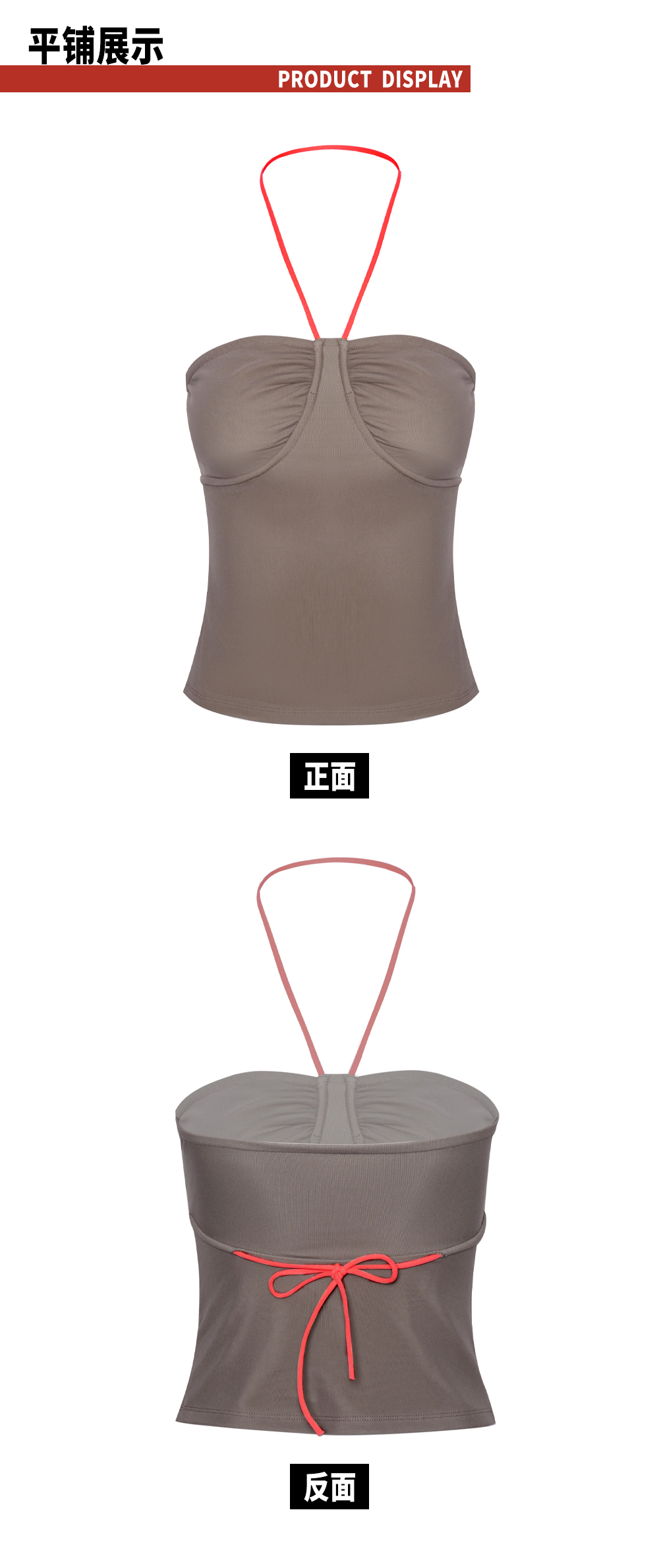 TR她热 时光沙漏 卡其色撞色抽绳褶皱弹力露背挂脖吊带抹胸