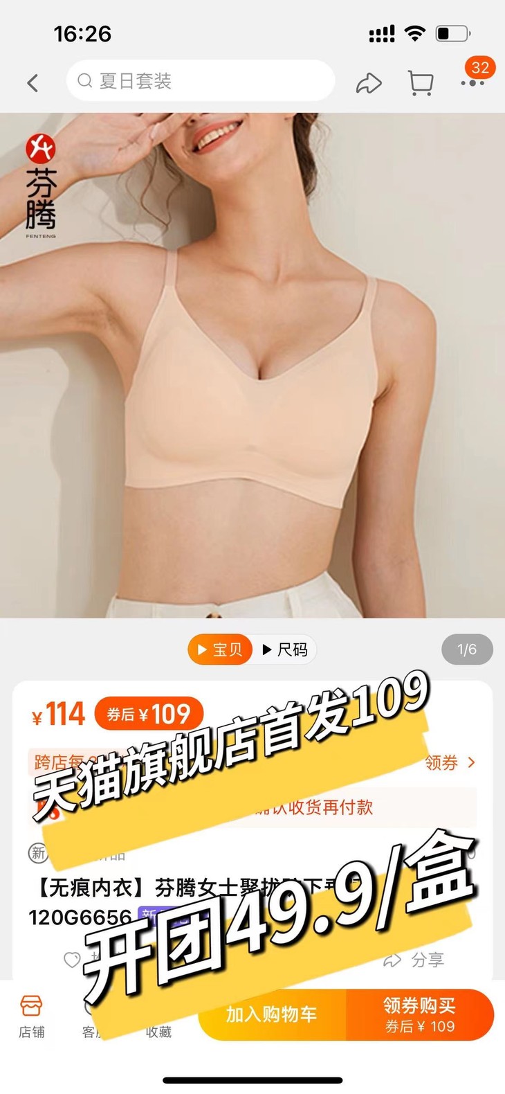 破价团49.9💰【芬腾无痕夏季凉感丝滑内衣】零售价199,咱们49.9一件,满两件再减5元! 一体无痕,柔软透气,V字减压肩带√预防下垂√舒适不勒!精美盒子包装~品牌有授权!