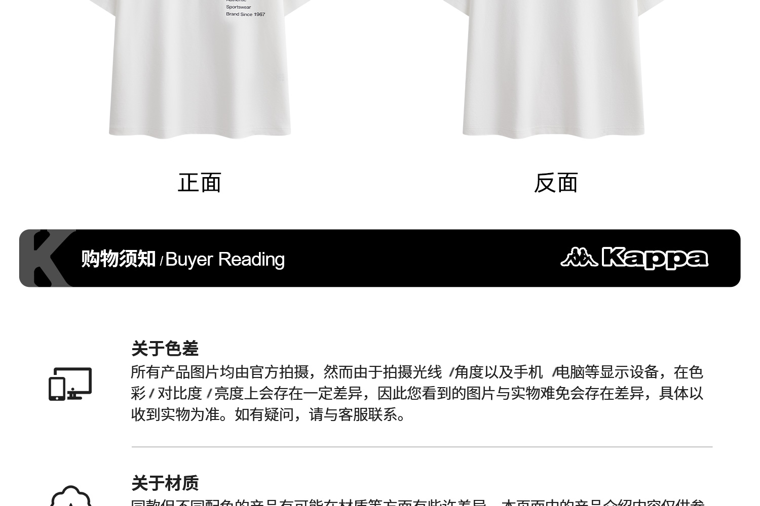 Kappa卡帕背靠背夏季运动短袖t恤男2025新款针织透气半袖休闲上衣K0F32TD15