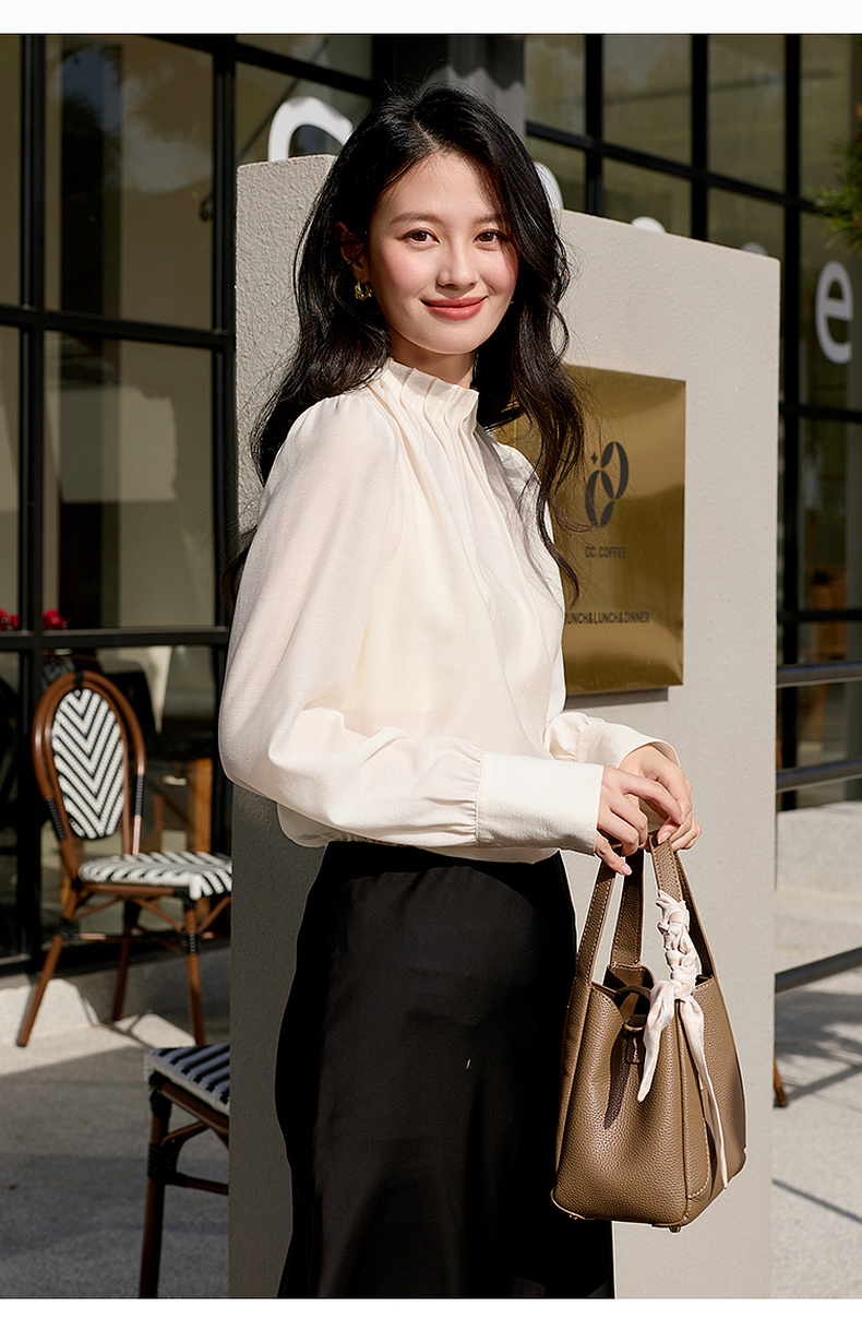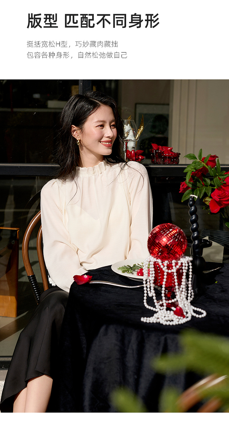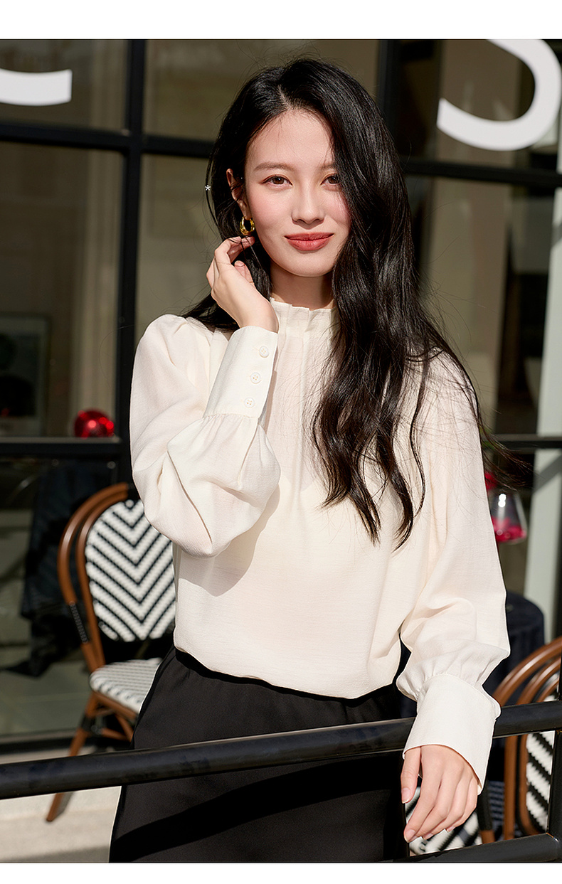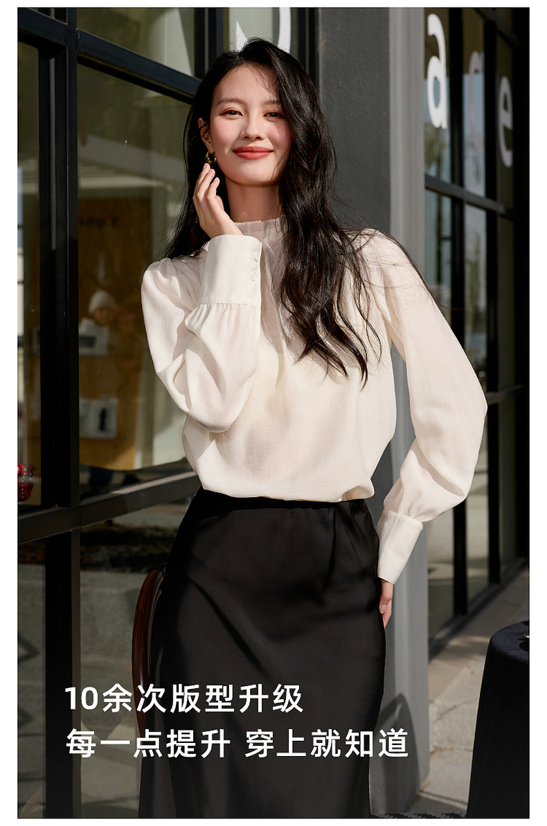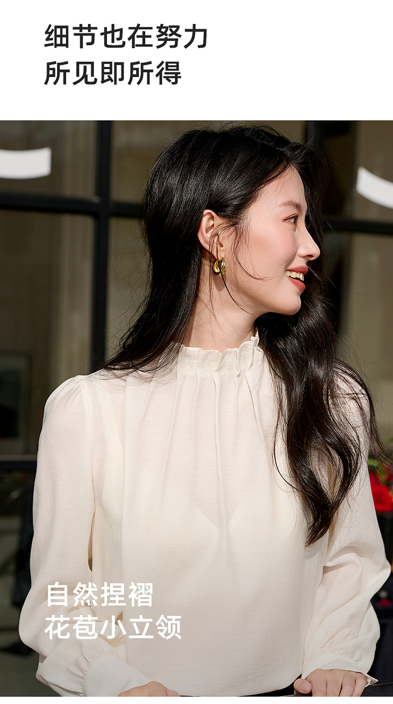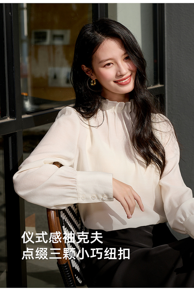 【醋酸】三彩2026春季新款花苞立领小衫衬衣长袖宽松轻奢气质S