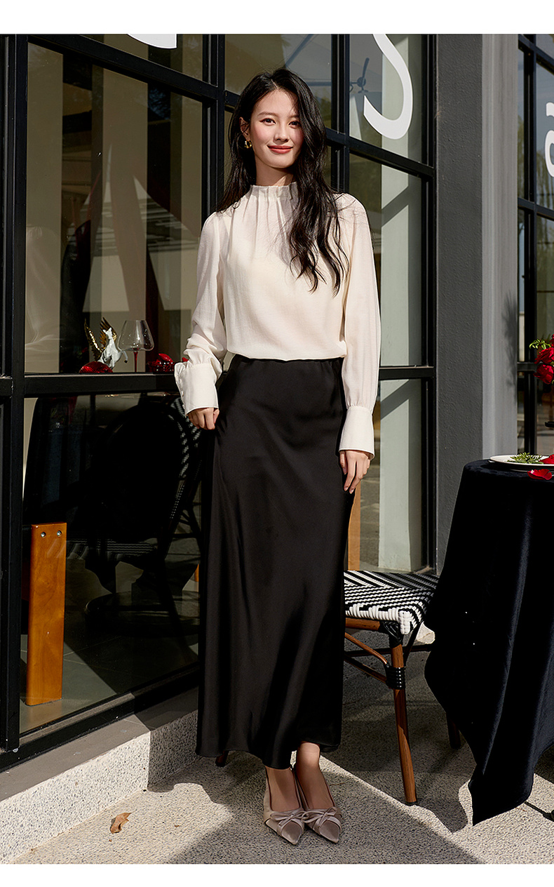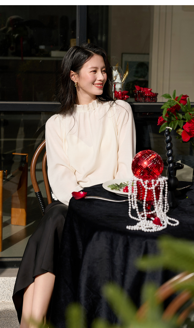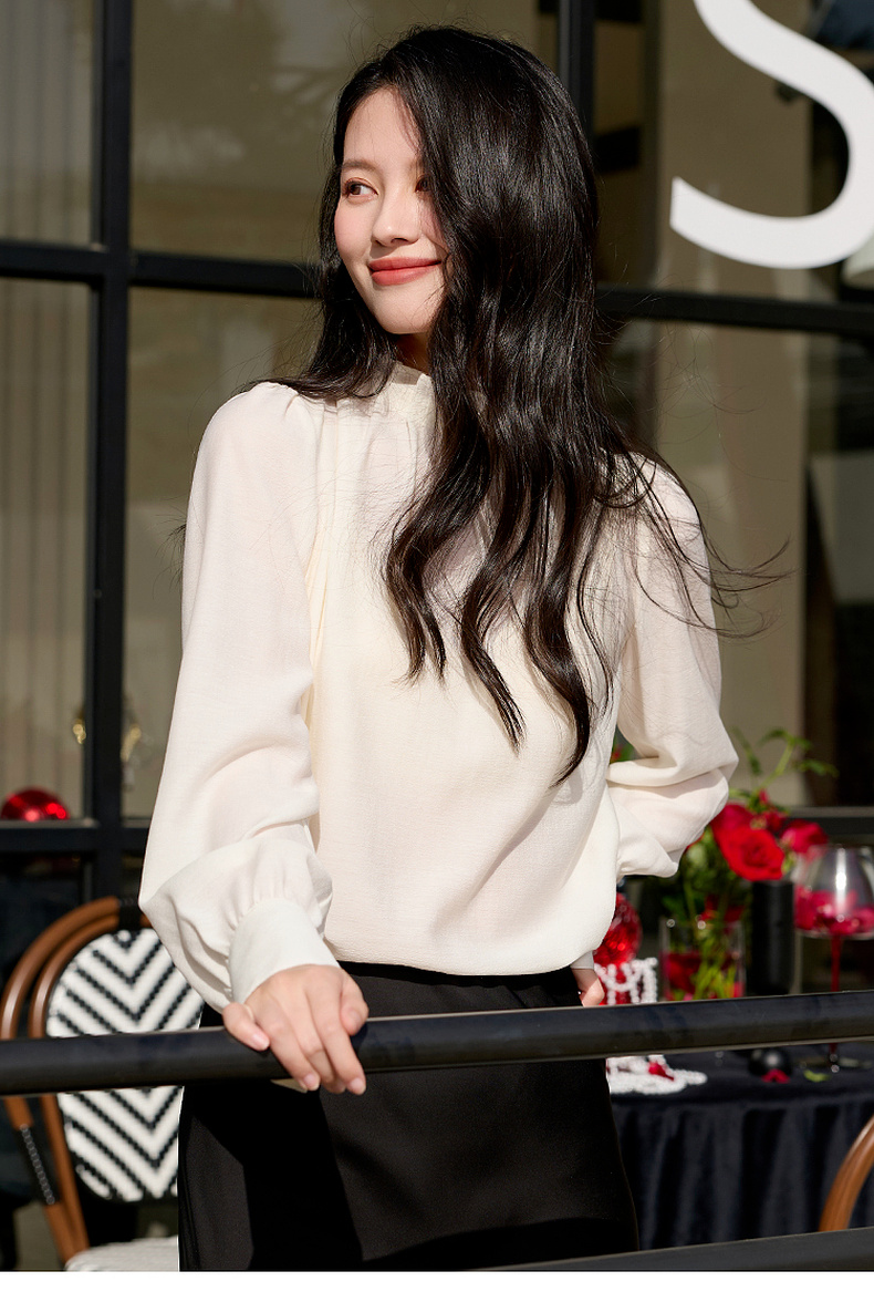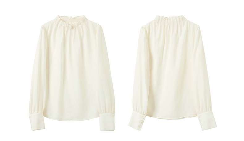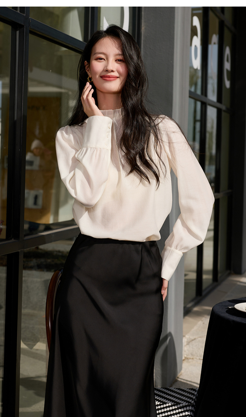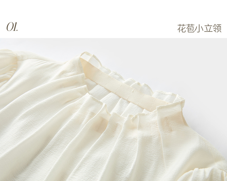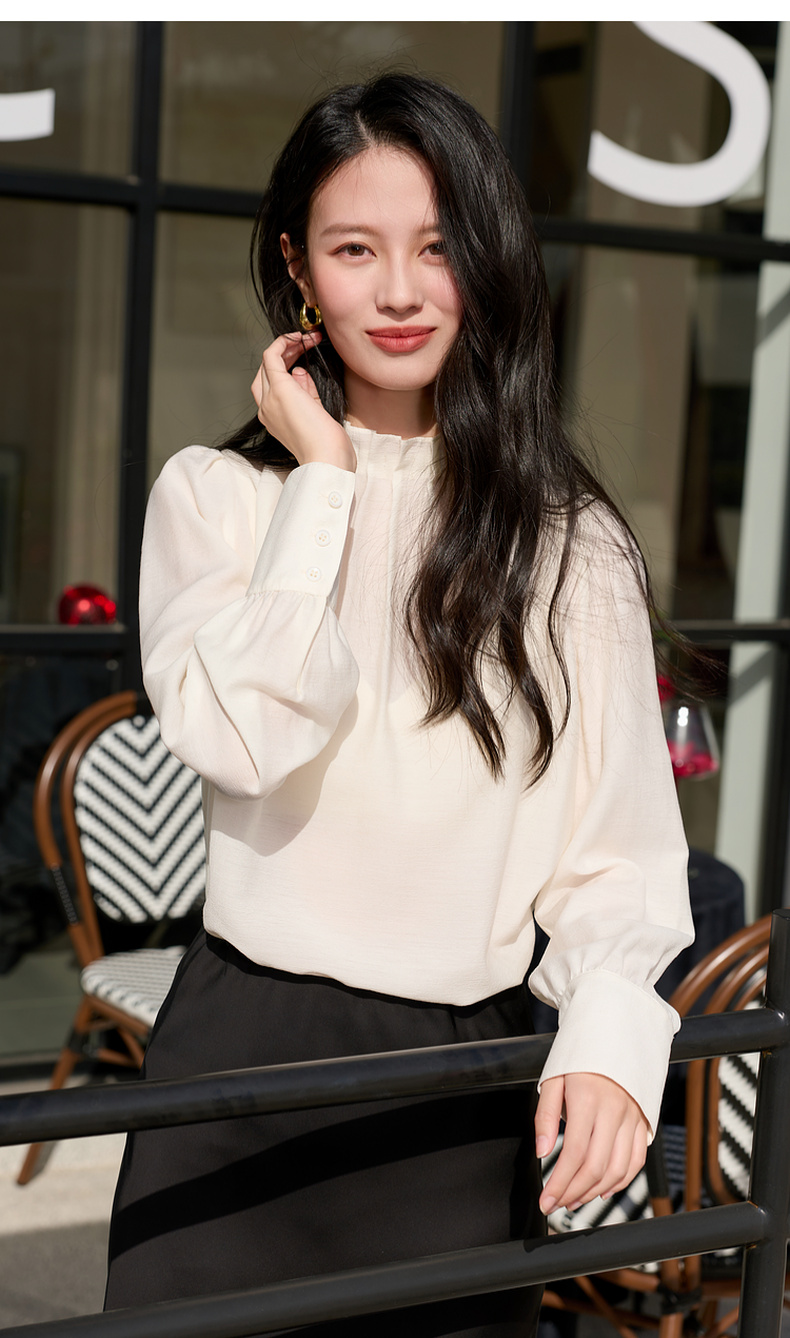 【醋酸】三彩2026春季新款花苞立领小衫衬衣长袖宽松轻奢气质S