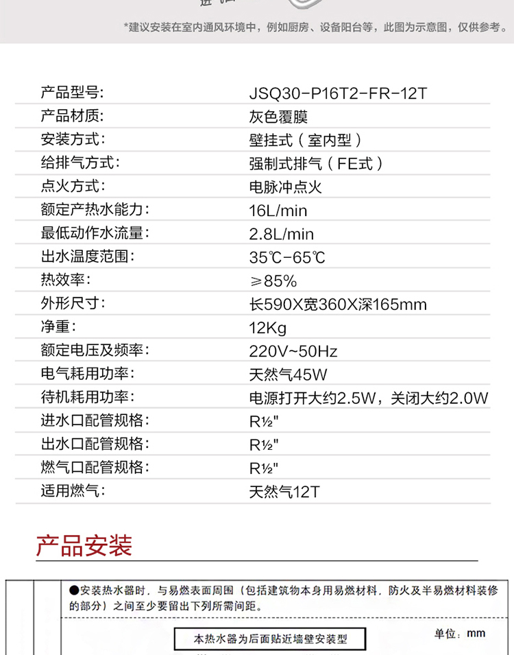 方太天燃气热水器16升恒温强制排气式智能恒温强排热水器速热燃气家用热水器天然气JSQ30-P16T1 P16T2恒温热水器