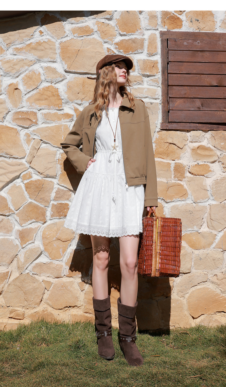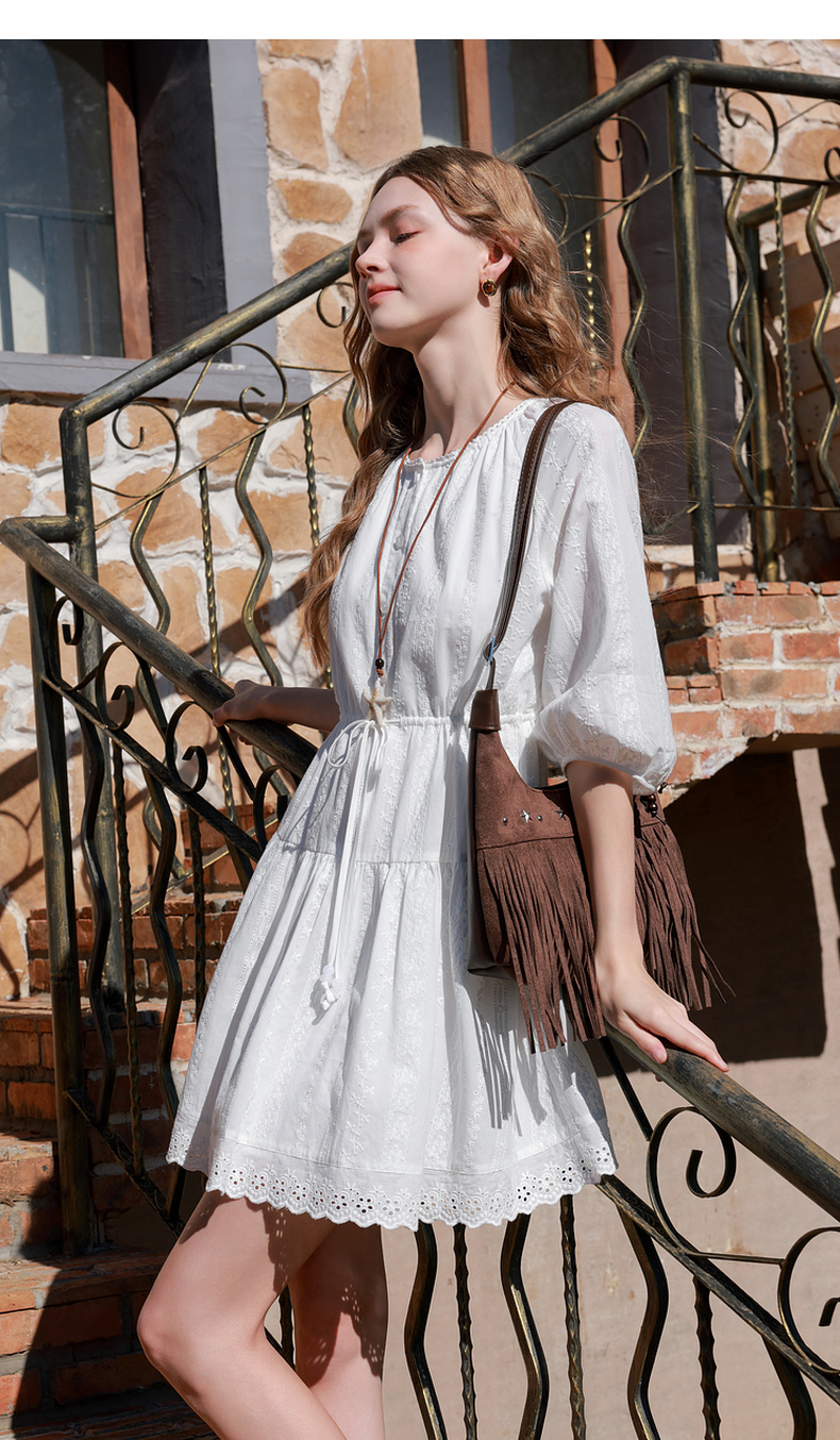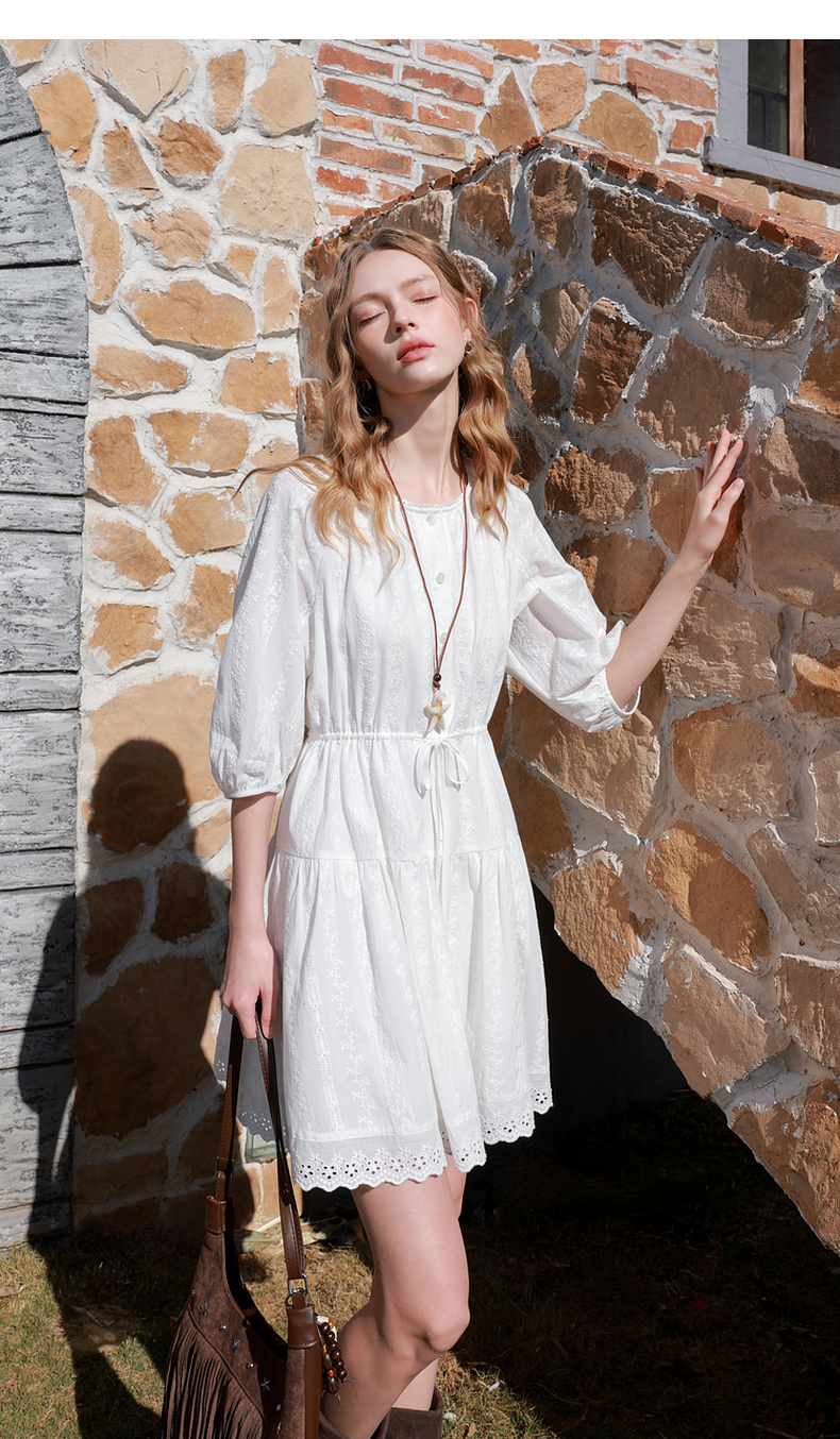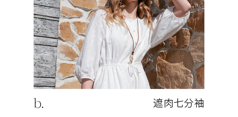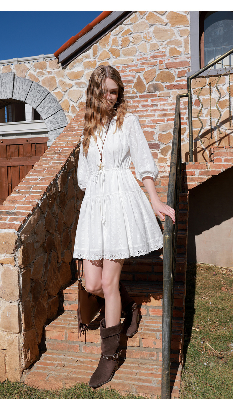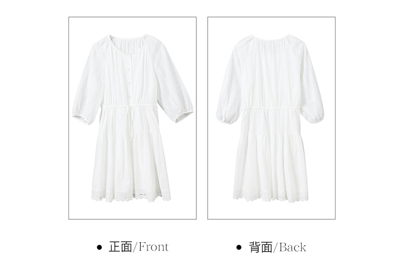 【100棉】三彩2026春季新款小白裙七分袖连衣裙A字裙短裙M
