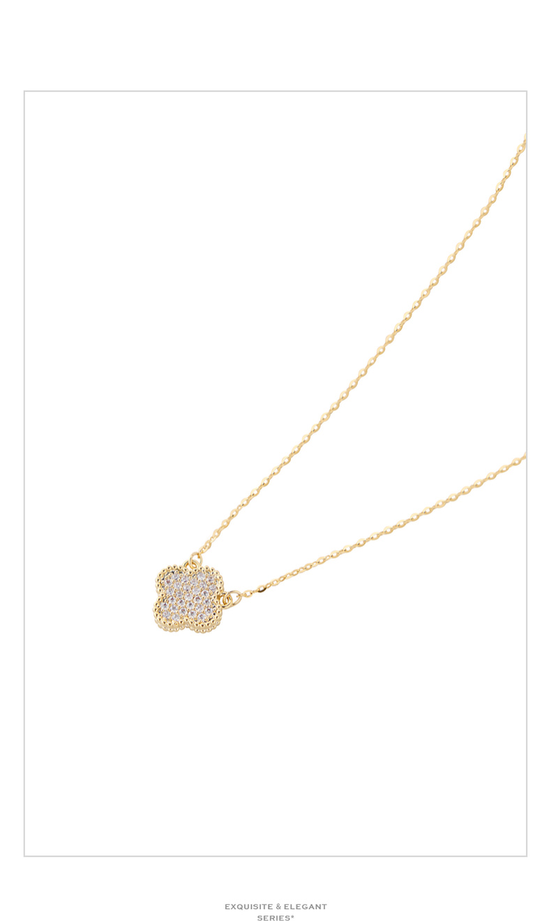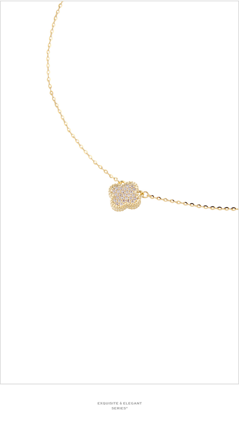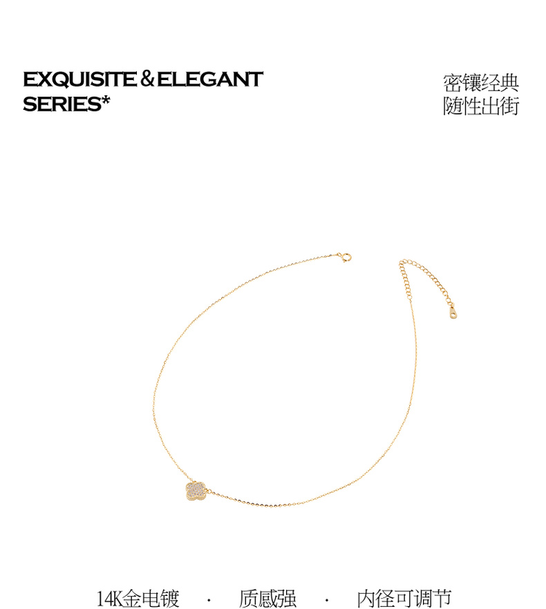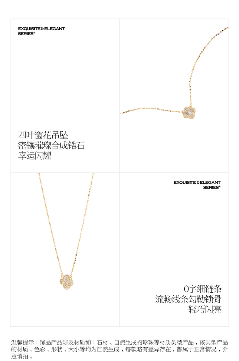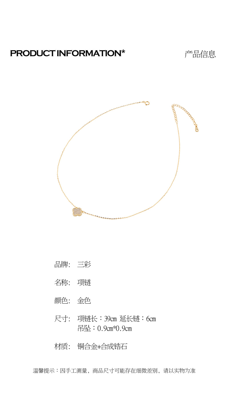 三彩2026新款四叶窗花吊坠细项链国风满镶轻奢锆石通勤锁骨链极简