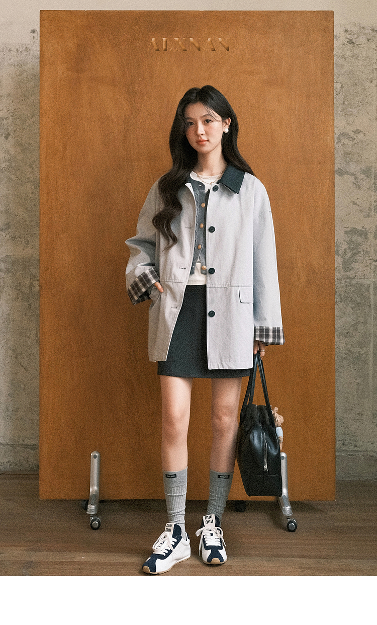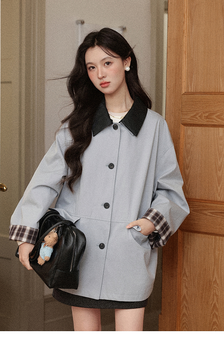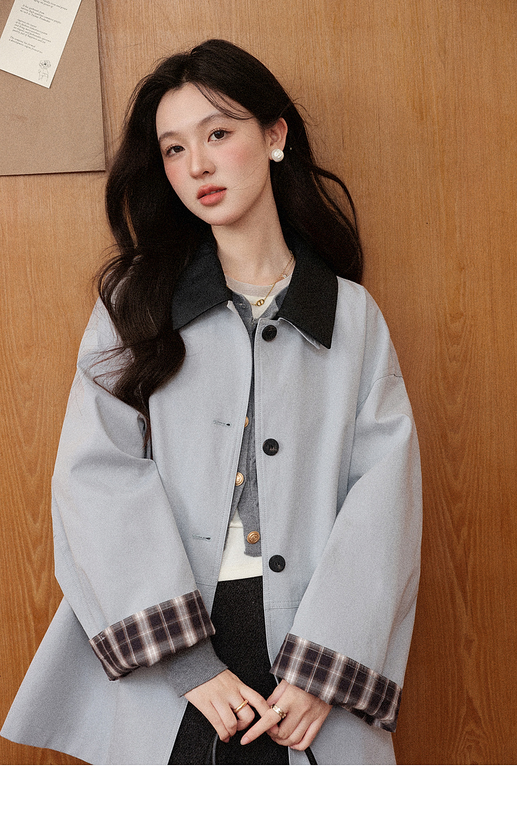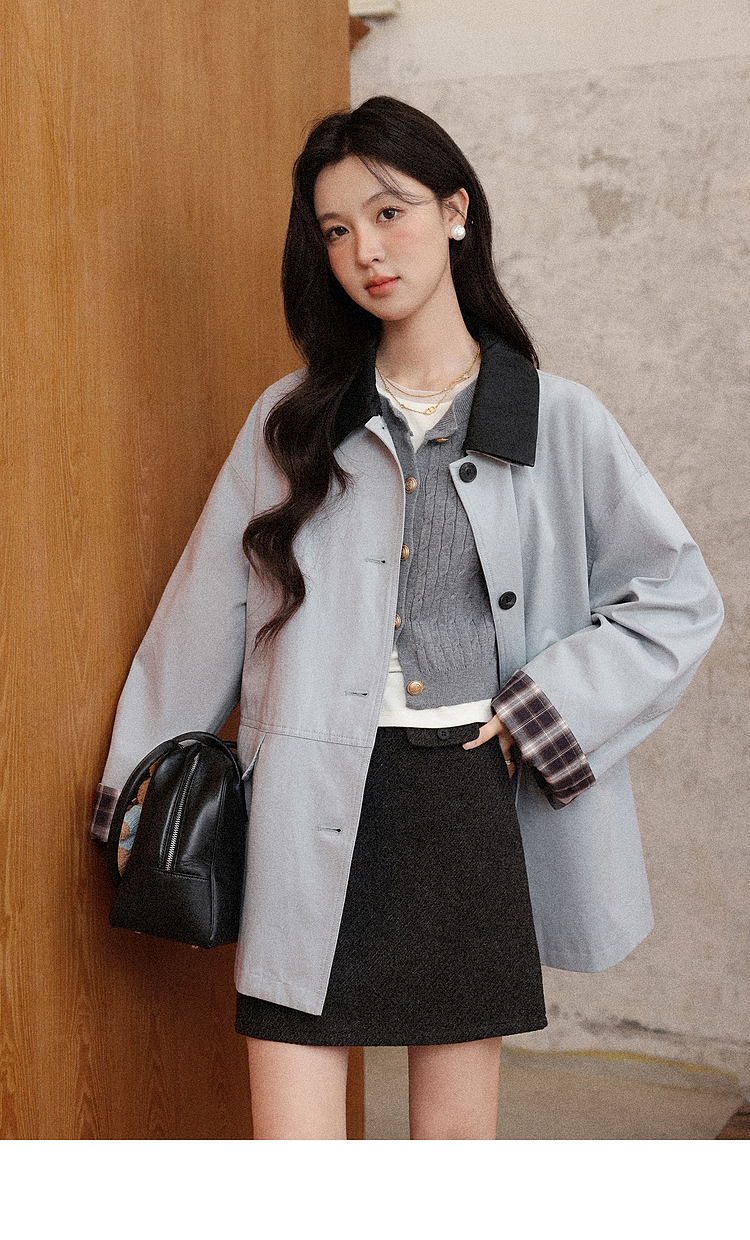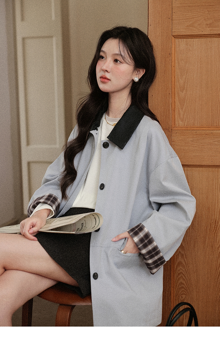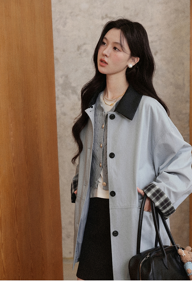 鹿向南「几行诗笺」早秋高级感撞色中长款风衣女秋季宽松休闲外套L57316