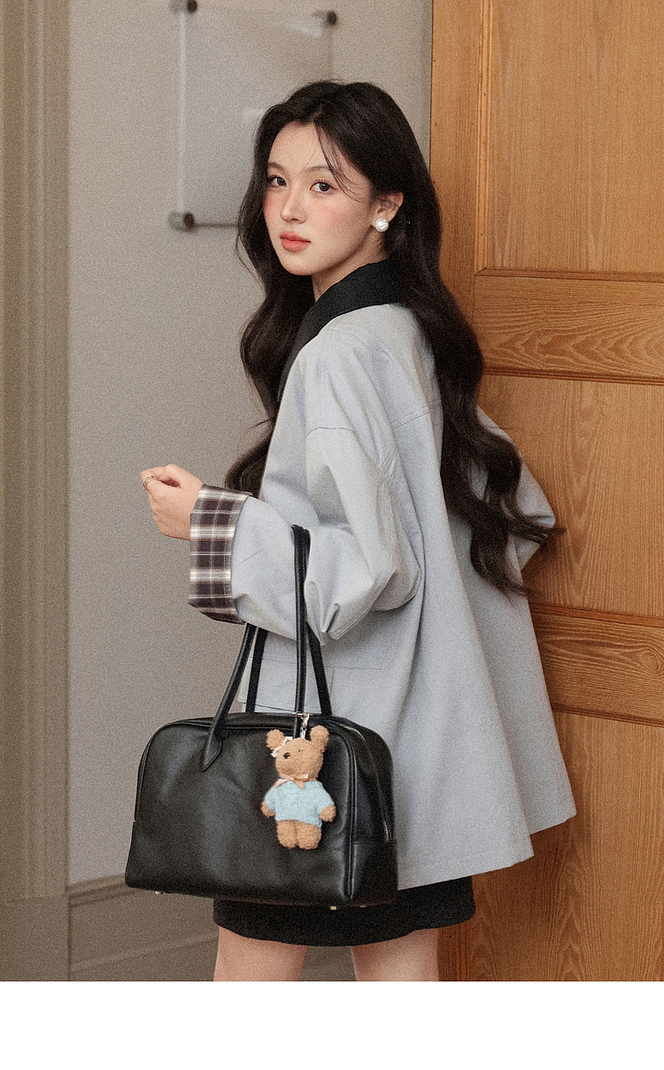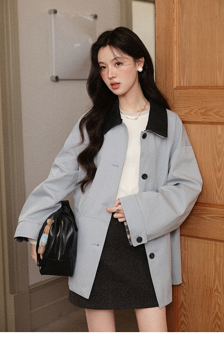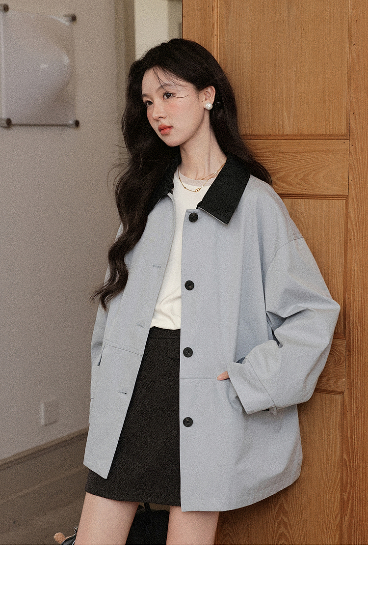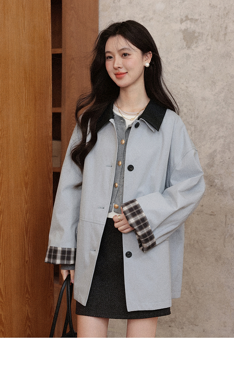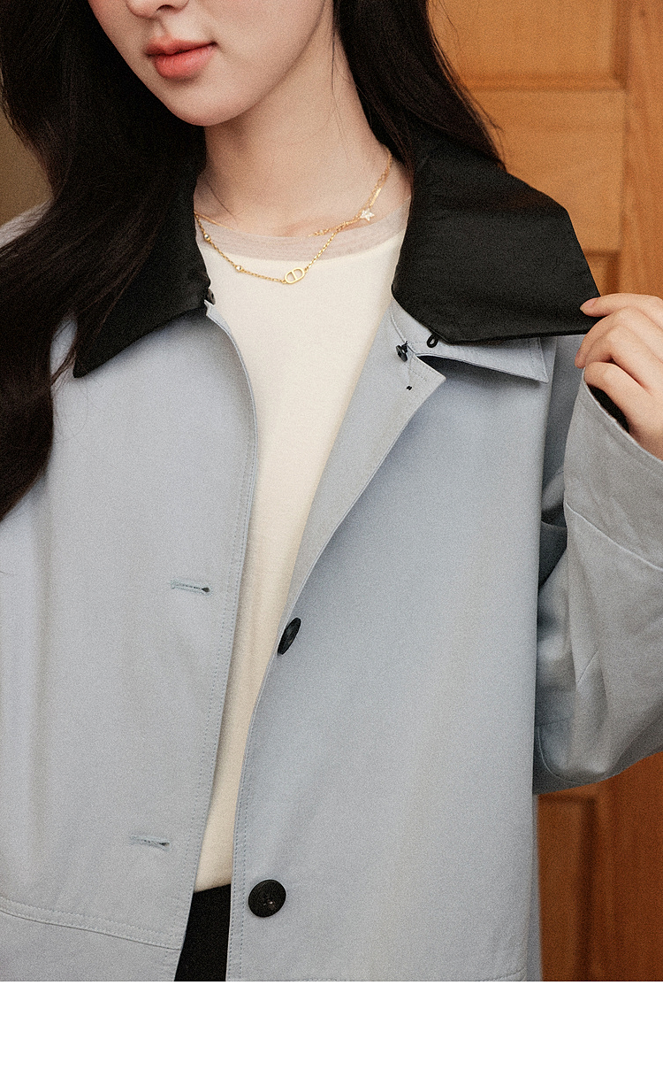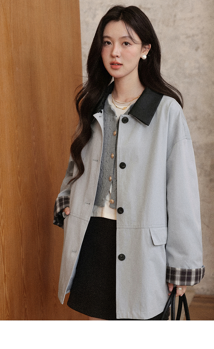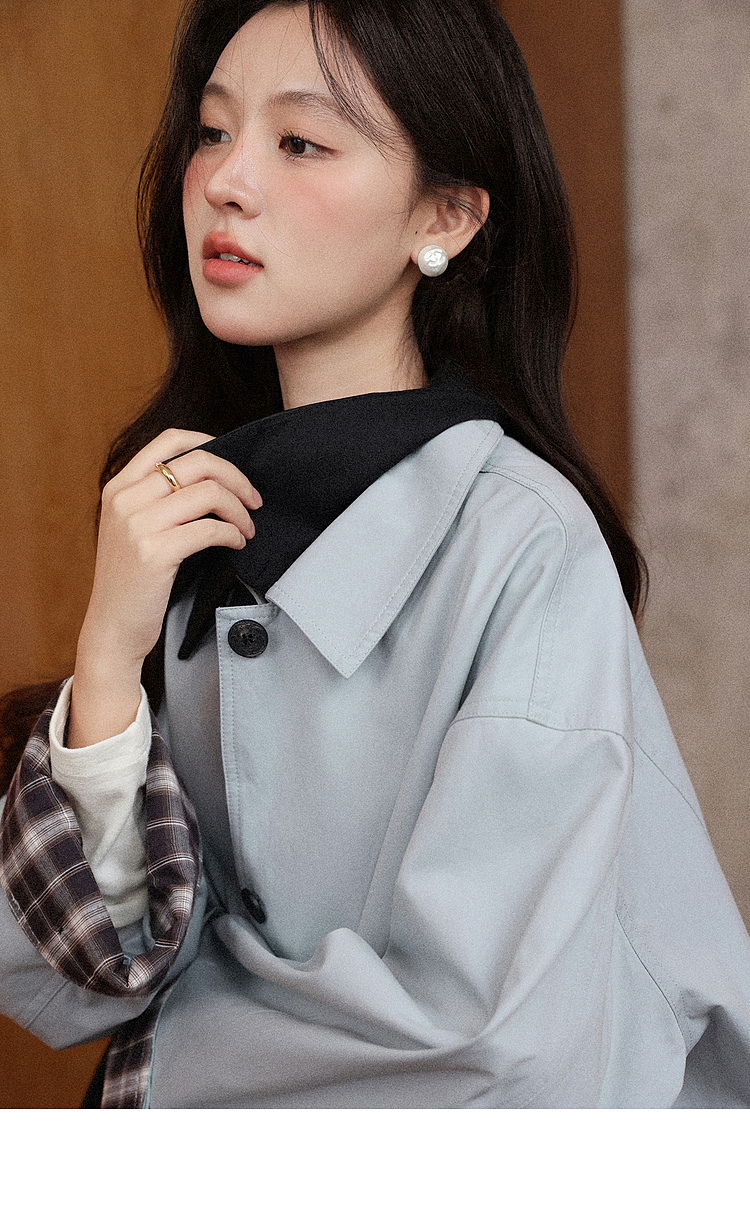 鹿向南「几行诗笺」早秋高级感撞色中长款风衣女秋季宽松休闲外套L57316