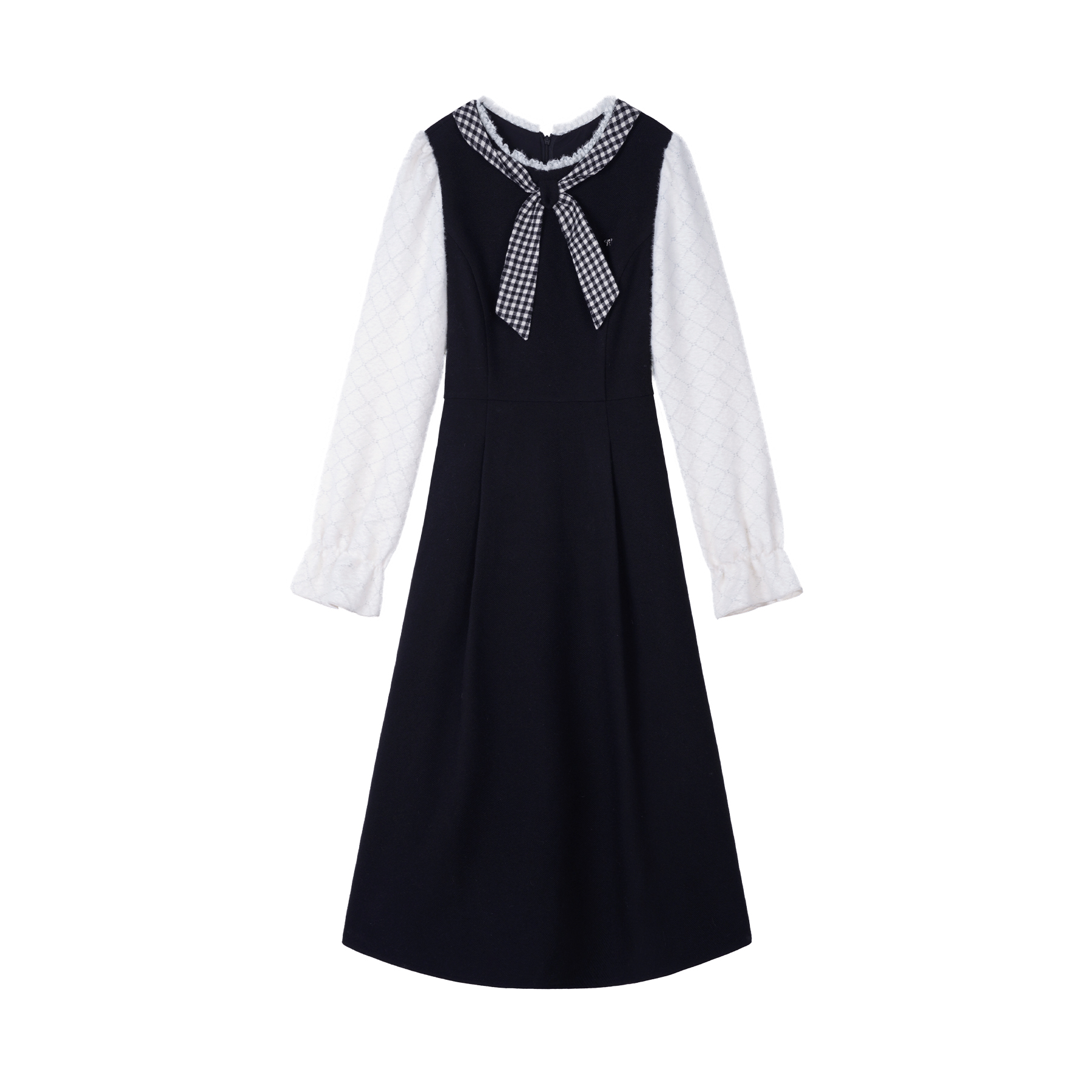 鹿向南「赫曼如影」气质拼接格连衣裙女2024新款冬季长款显瘦裙子DYL661659